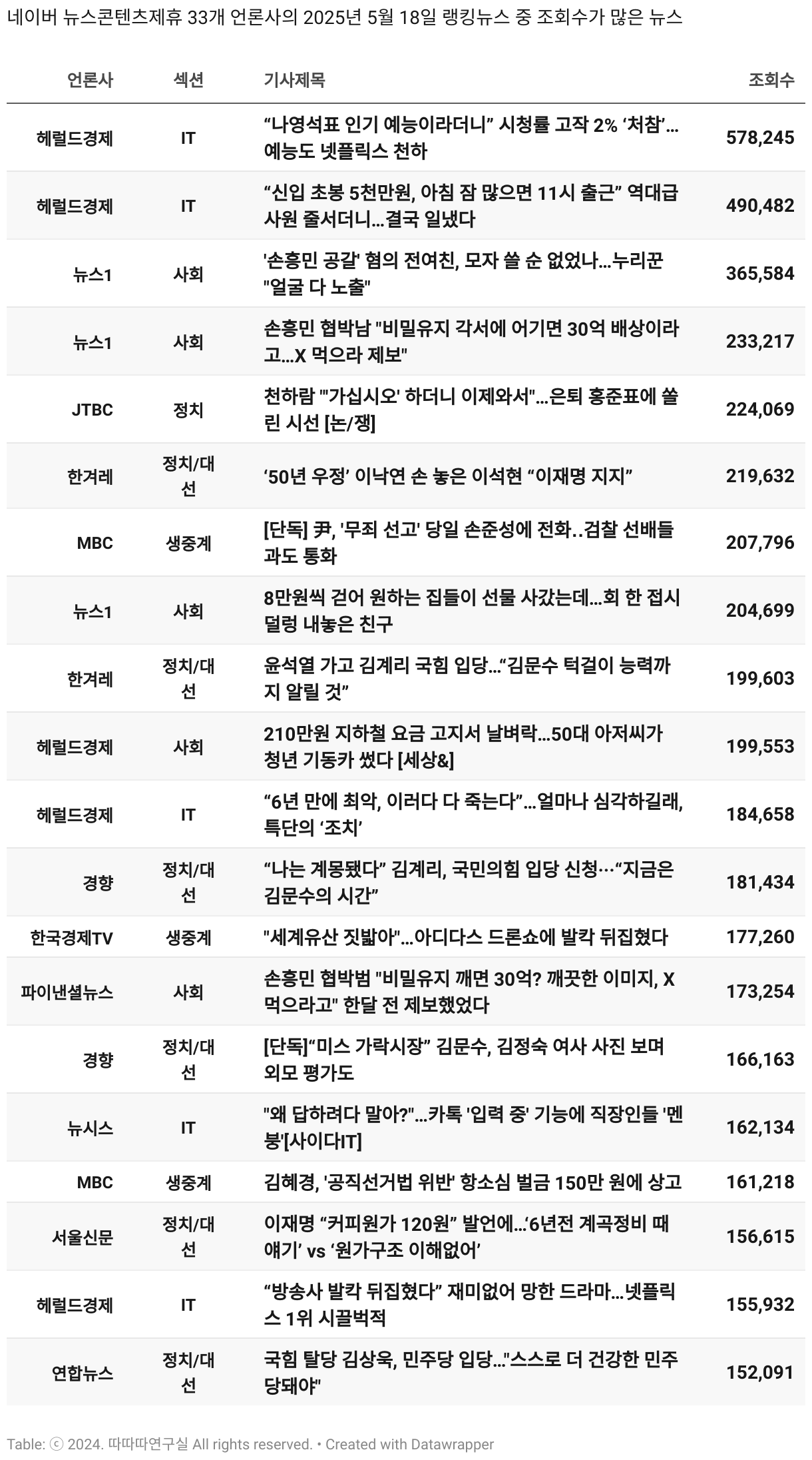 보도 시간대 기준 가장 흥한 기사 3건이 표시됩니다.