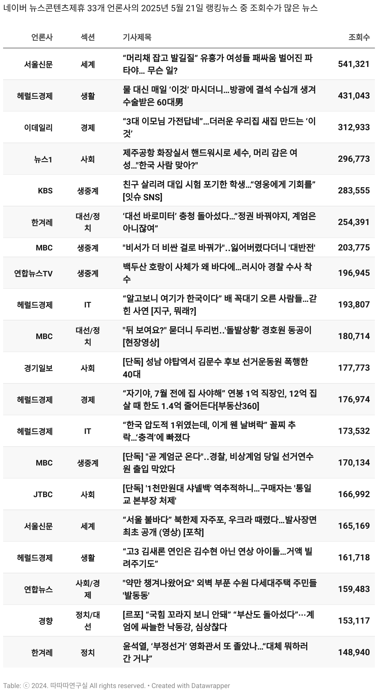 보도 시간대 기준 가장 흥한 기사 3건이 표시됩니다.