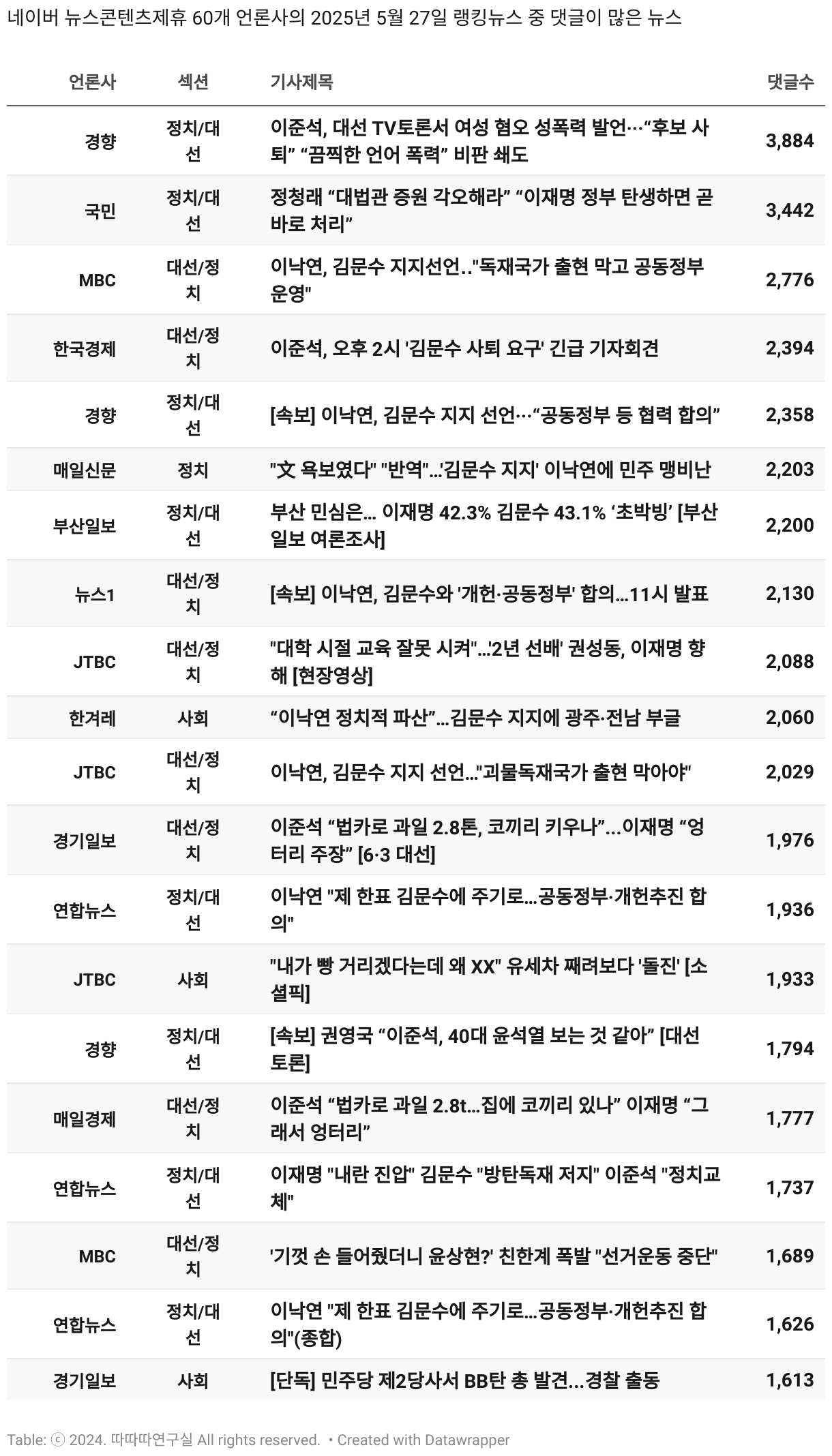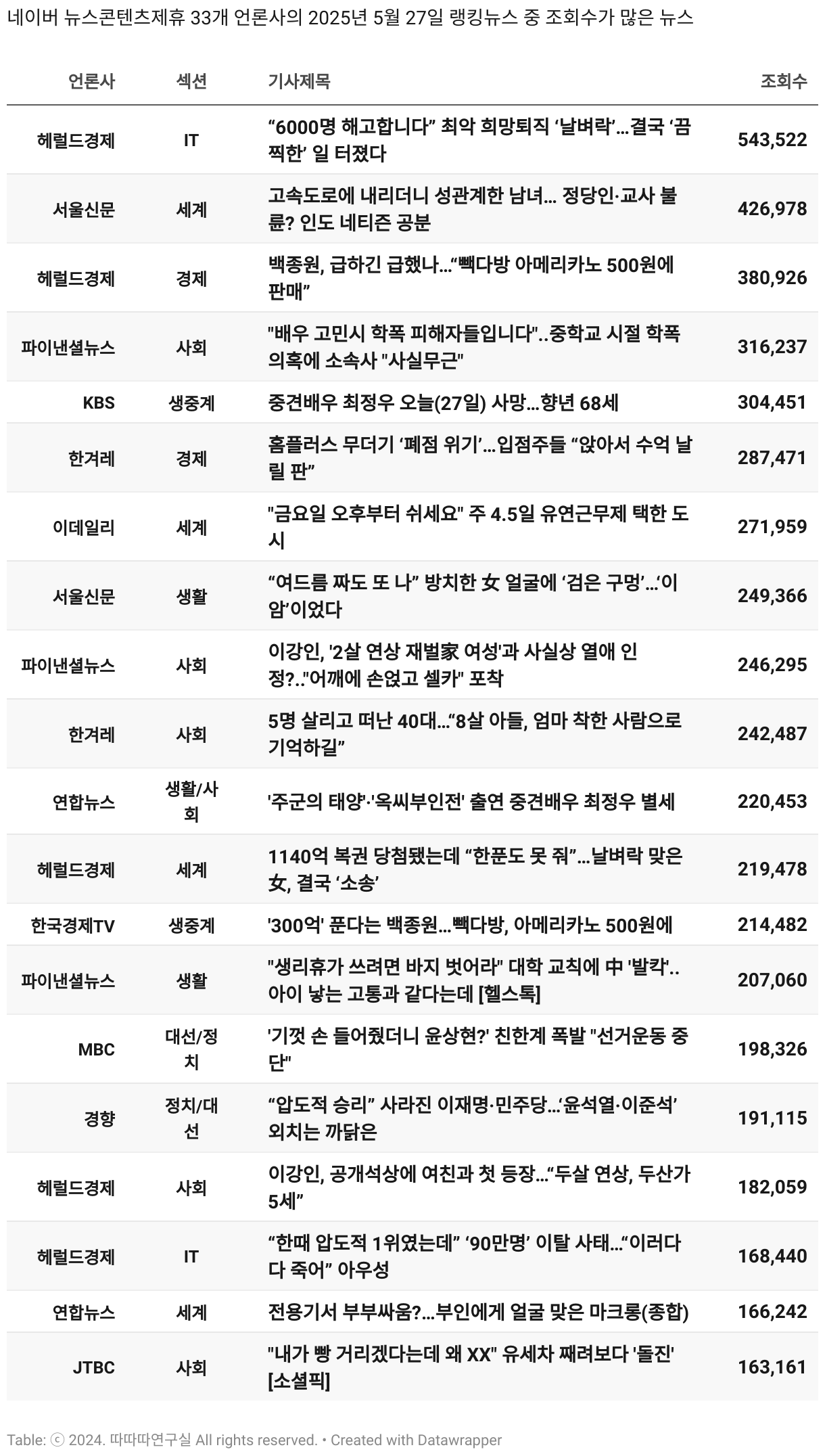 보도 시간대 기준 가장 흥한 기사 3건이 표시됩니다.