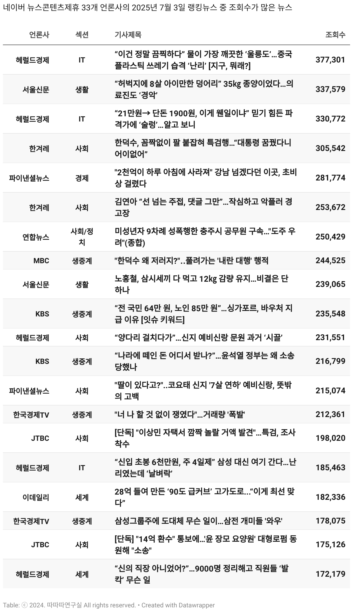 보도 시간대 기준 가장 흥한 기사 3건이 표시됩니다.