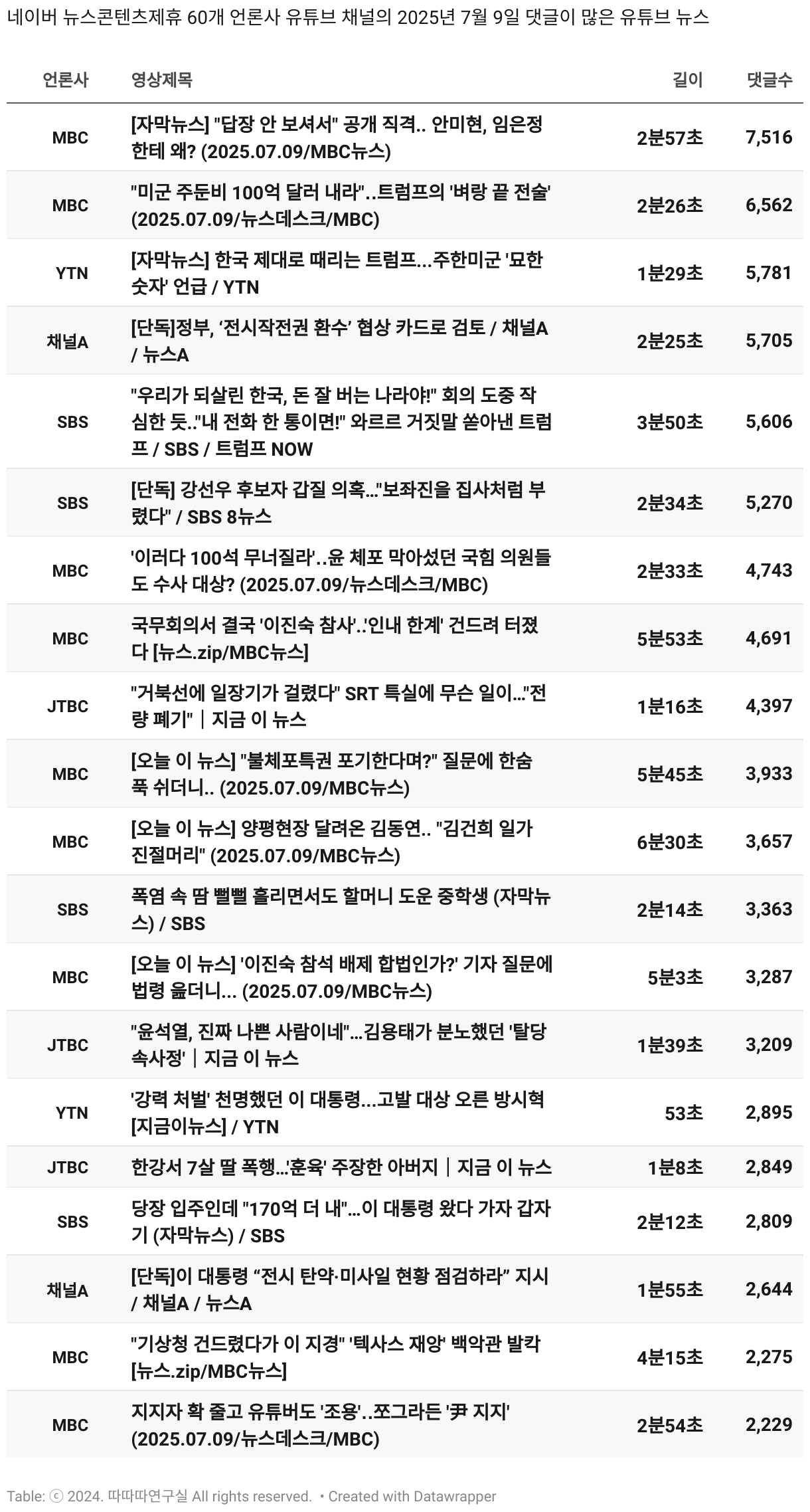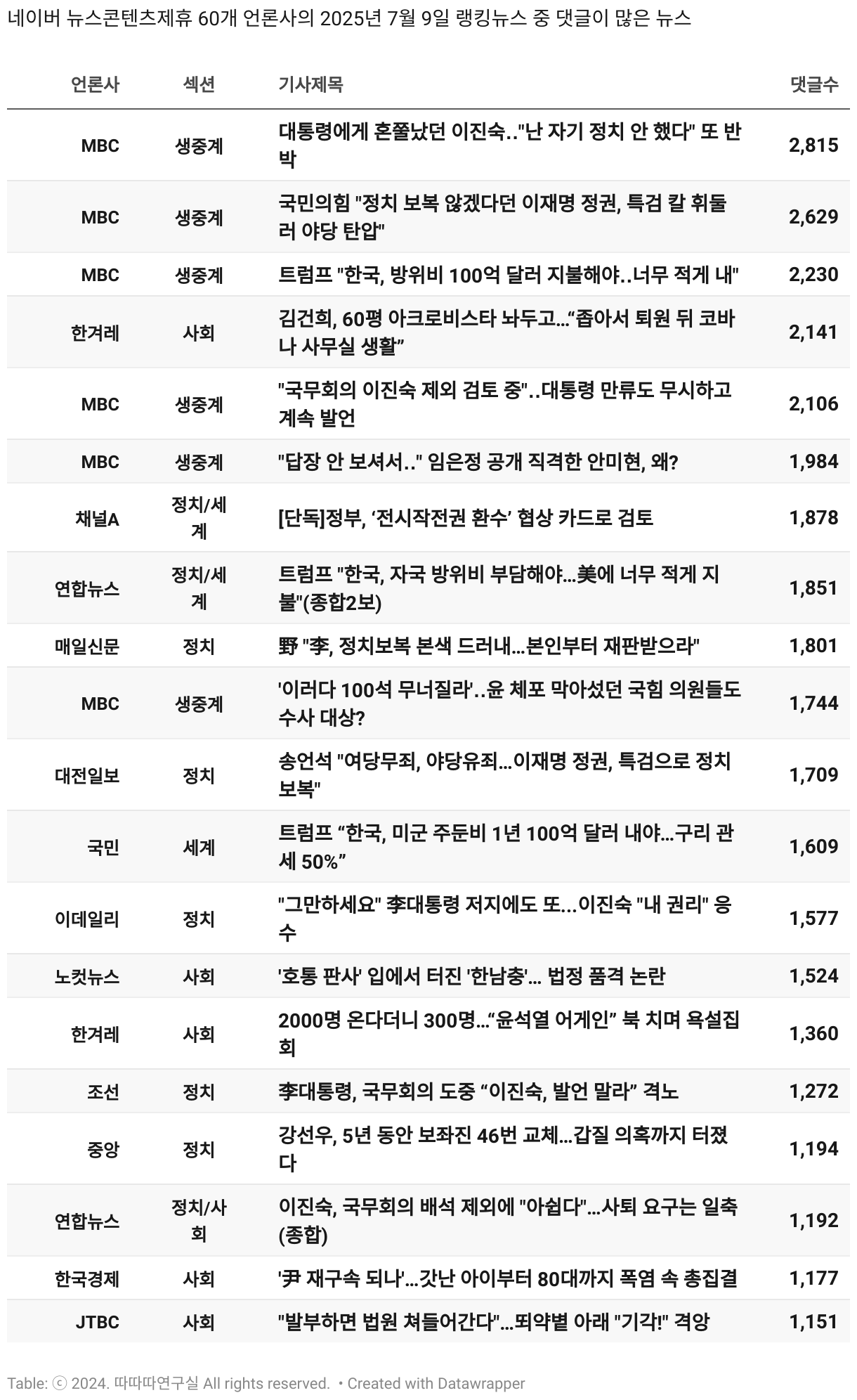 일간 흥한 뉴스 - 7월 9일 수요일