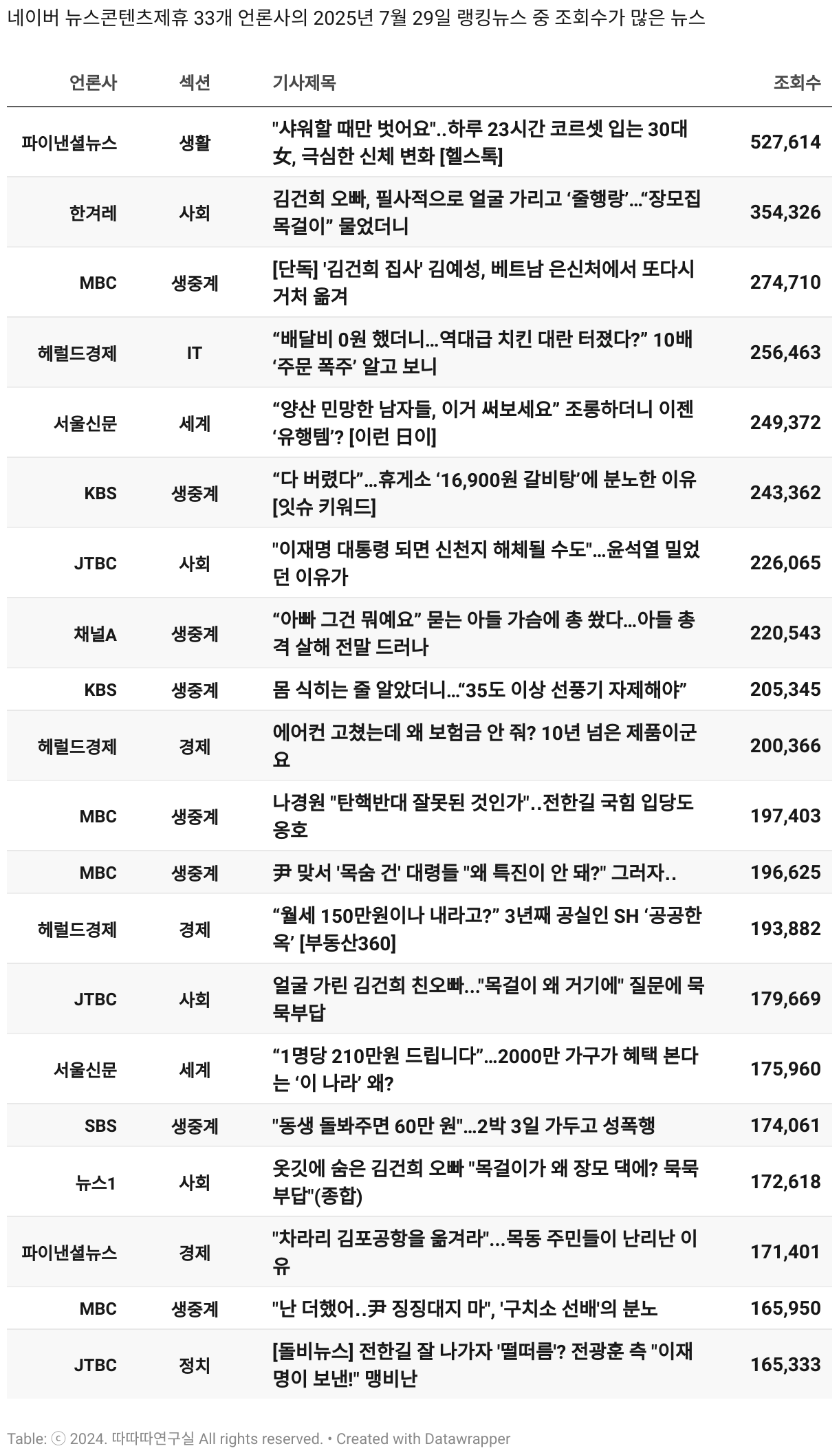 보도 시간대 기준 가장 흥한 기사 3건이 표시됩니다.