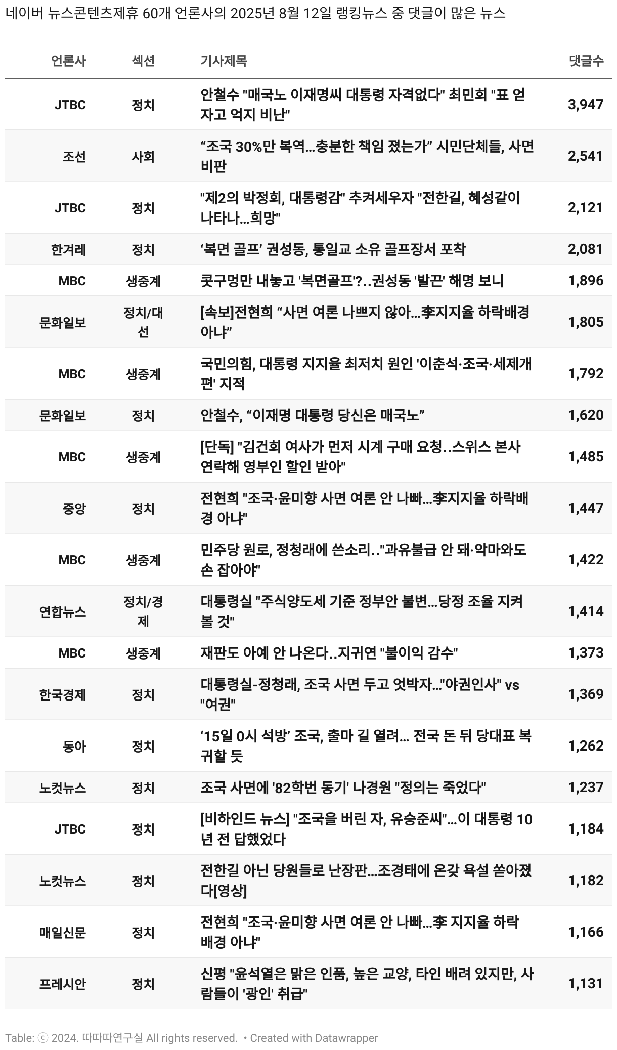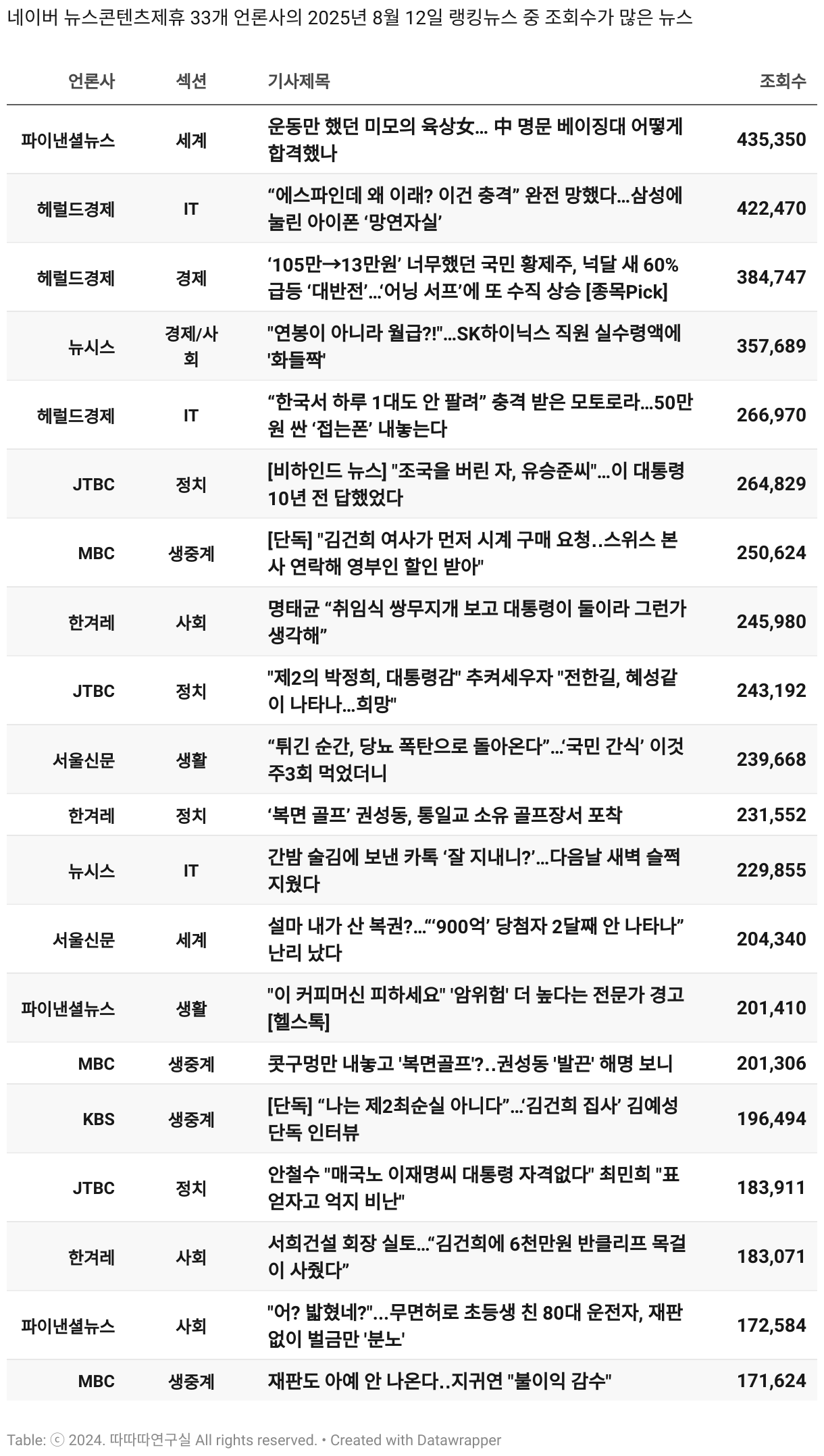 보도 시간대 기준 가장 흥한 기사 3건이 표시됩니다.