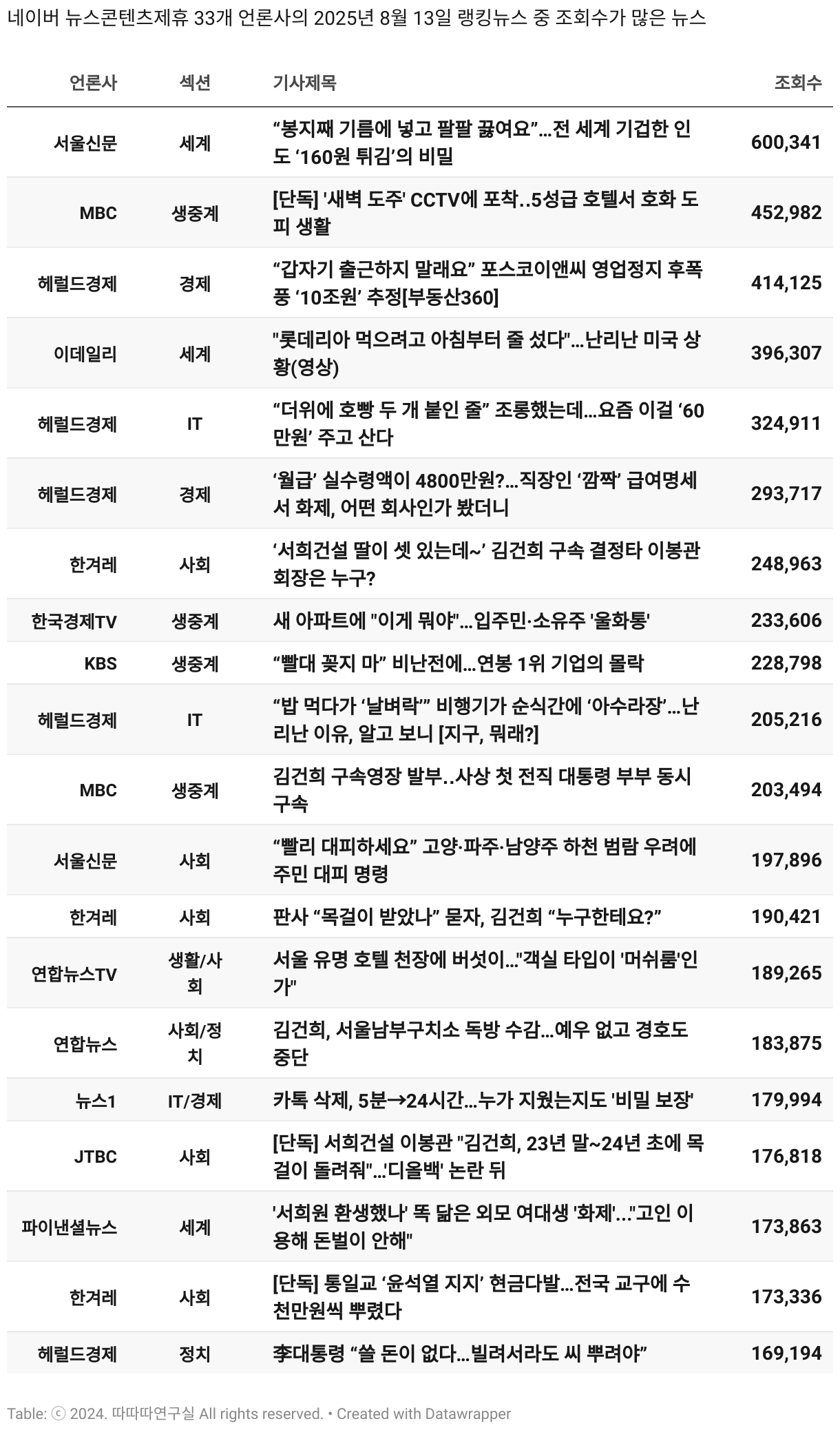 보도 시간대 기준 가장 흥한 기사 3건이 표시됩니다.