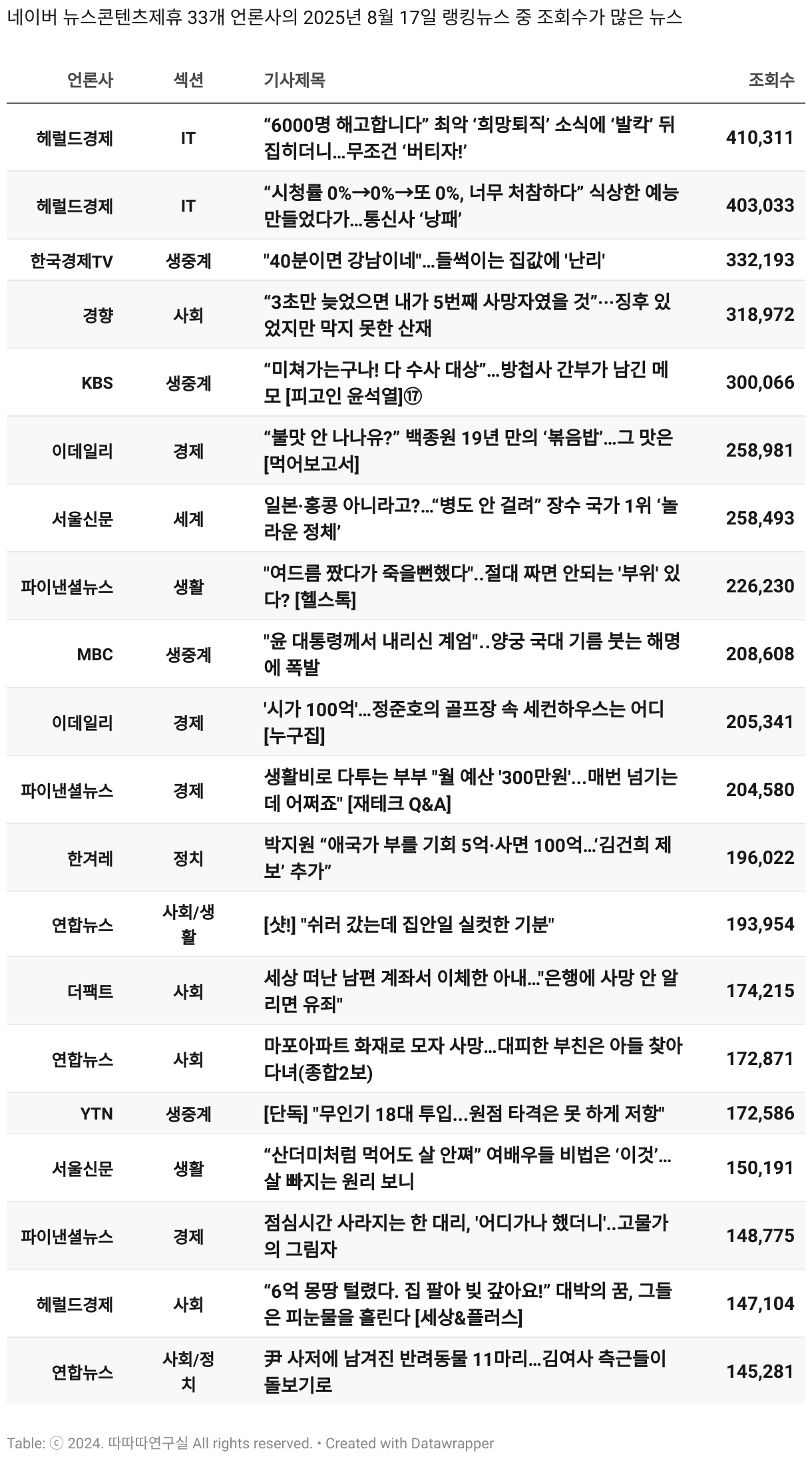 보도 시간대 기준 가장 흥한 기사 3건이 표시됩니다.