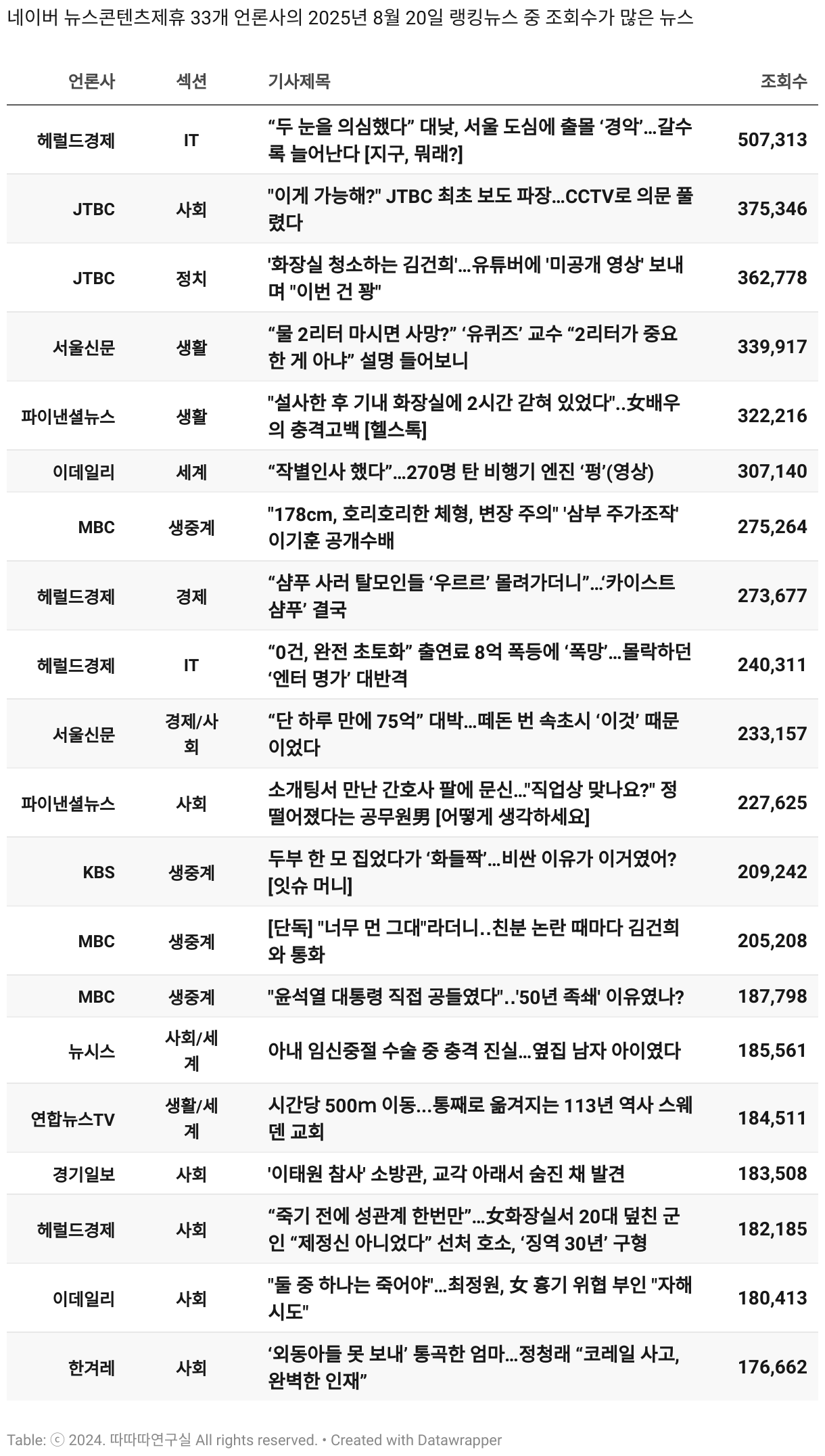 일간 흥한 뉴스 - 8월 20일 수요일