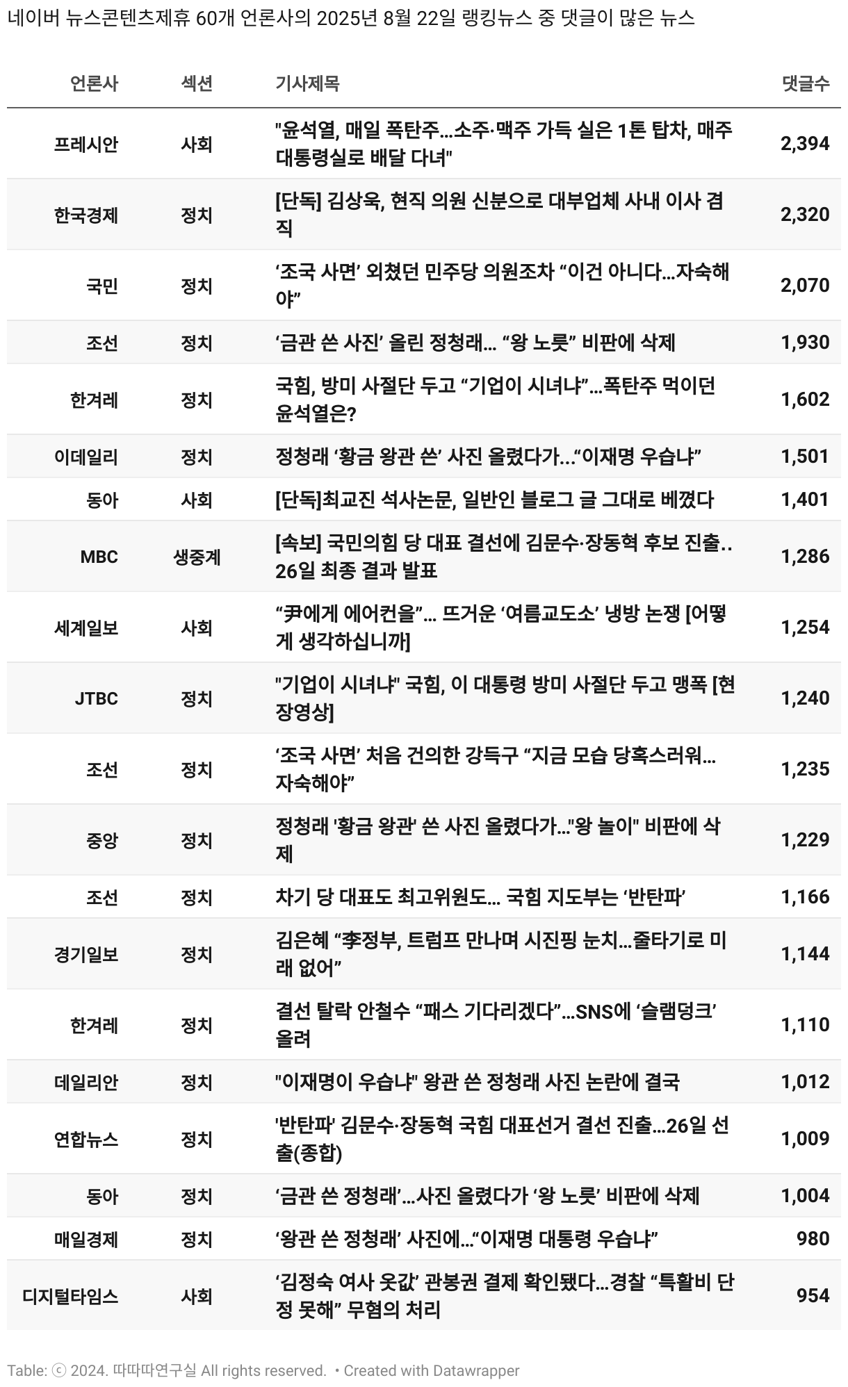 보도 시간대 기준 가장 흥한 기사 3건이 표시됩니다.