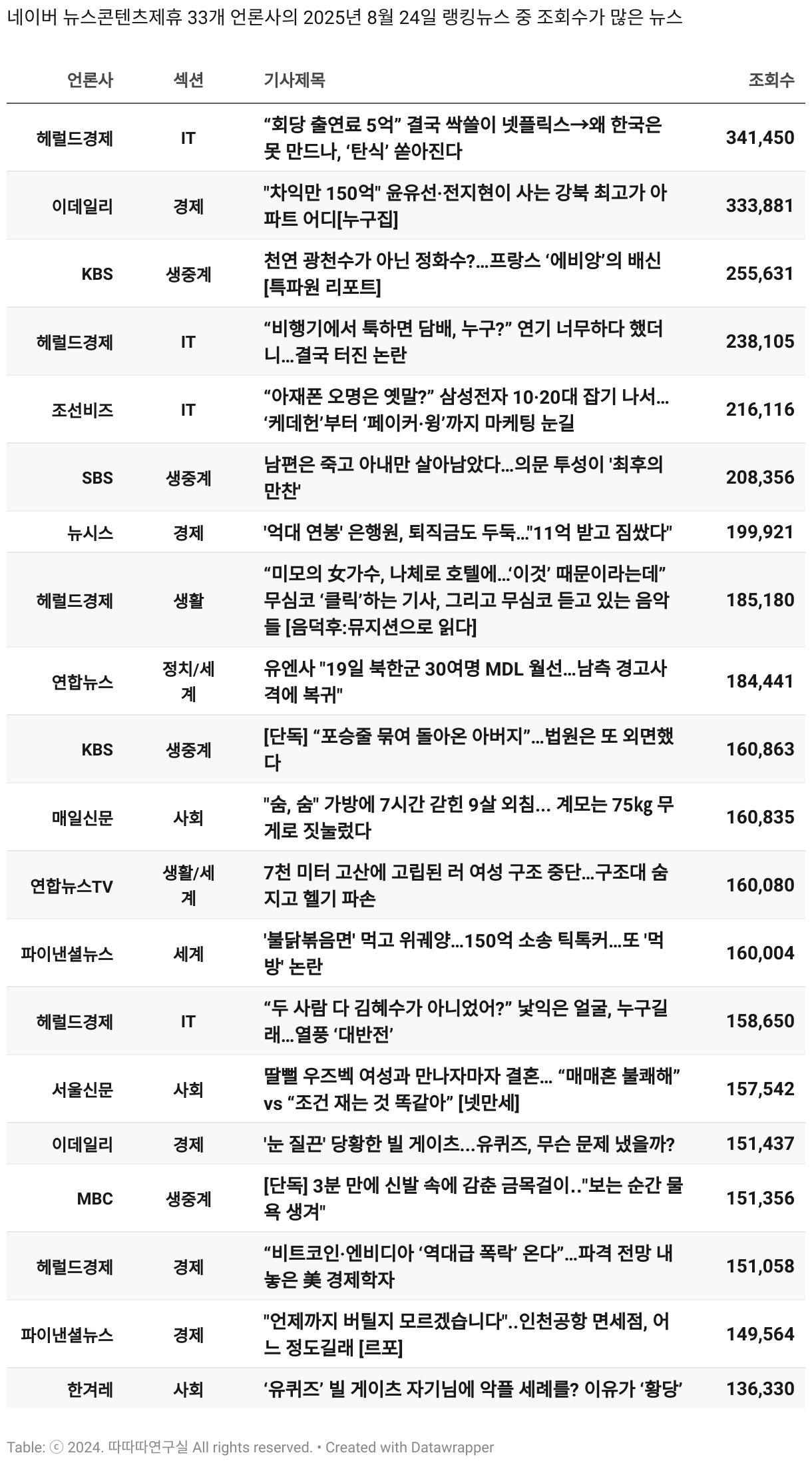 보도 시간대 기준 가장 흥한 기사 3건이 표시됩니다.
