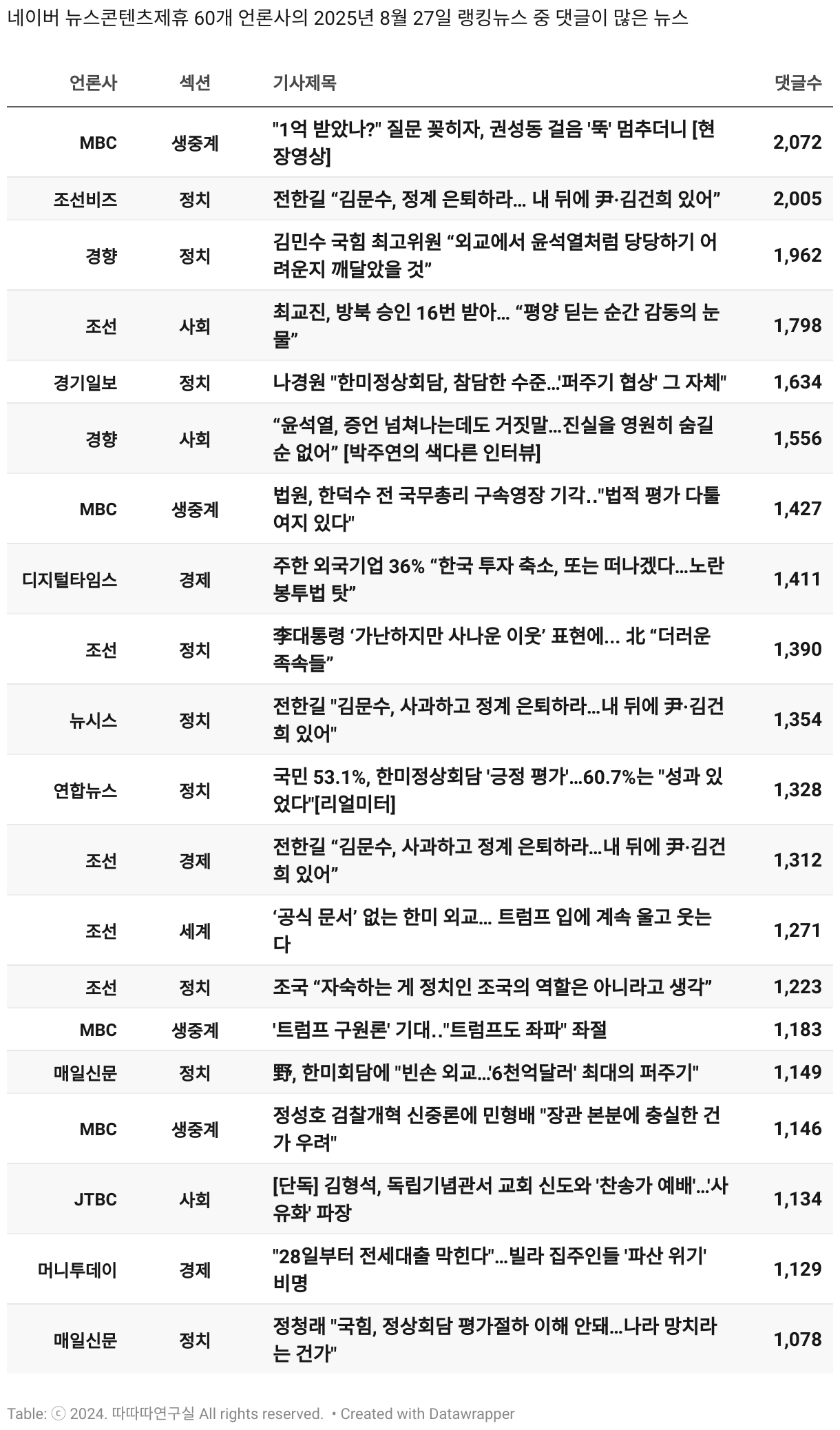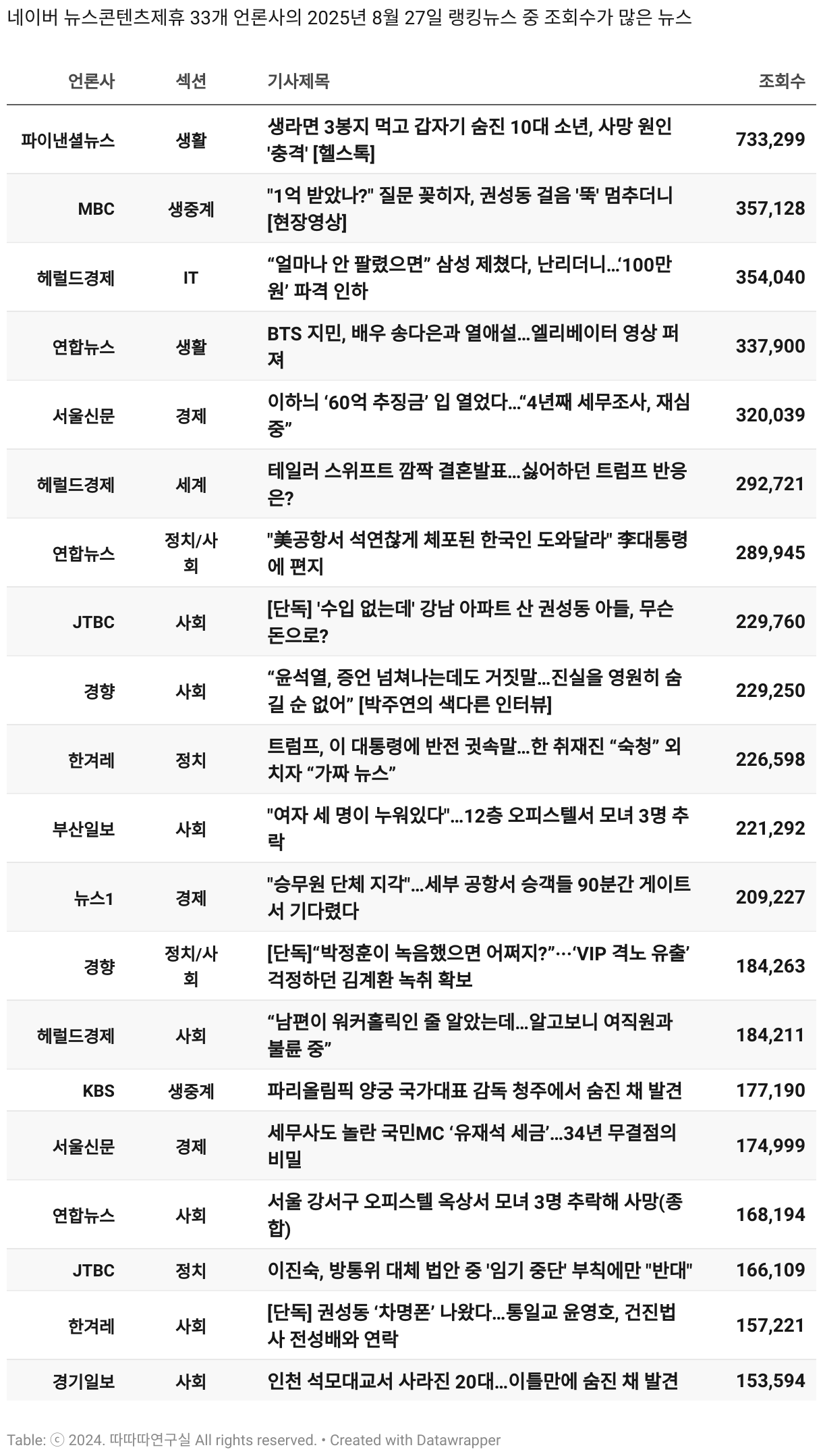 일간 흥한 뉴스 - 8월 27일 수요일