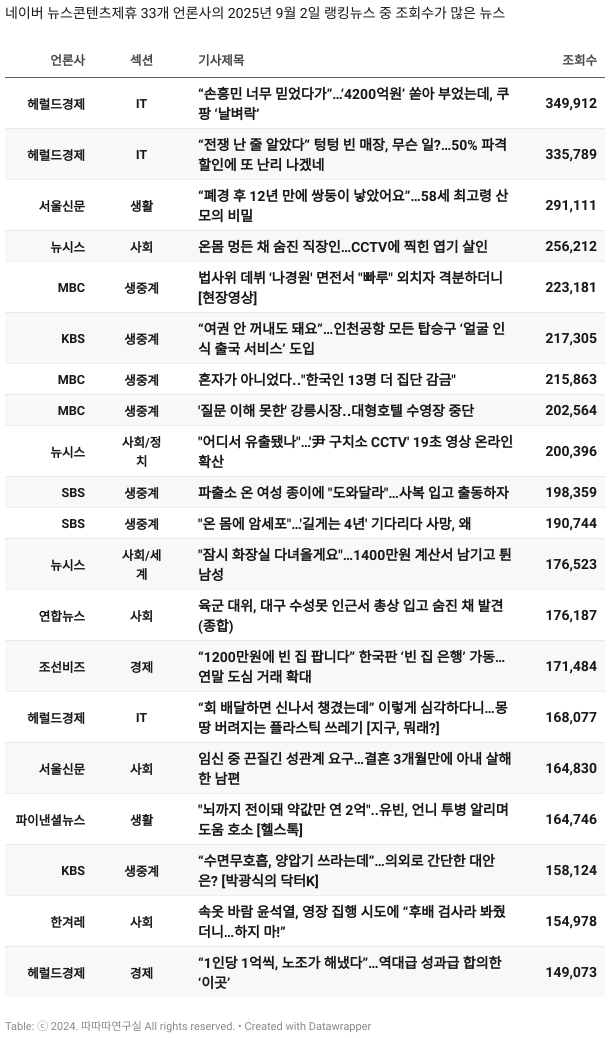 보도 시간대 기준 가장 흥한 기사 3건이 표시됩니다.
