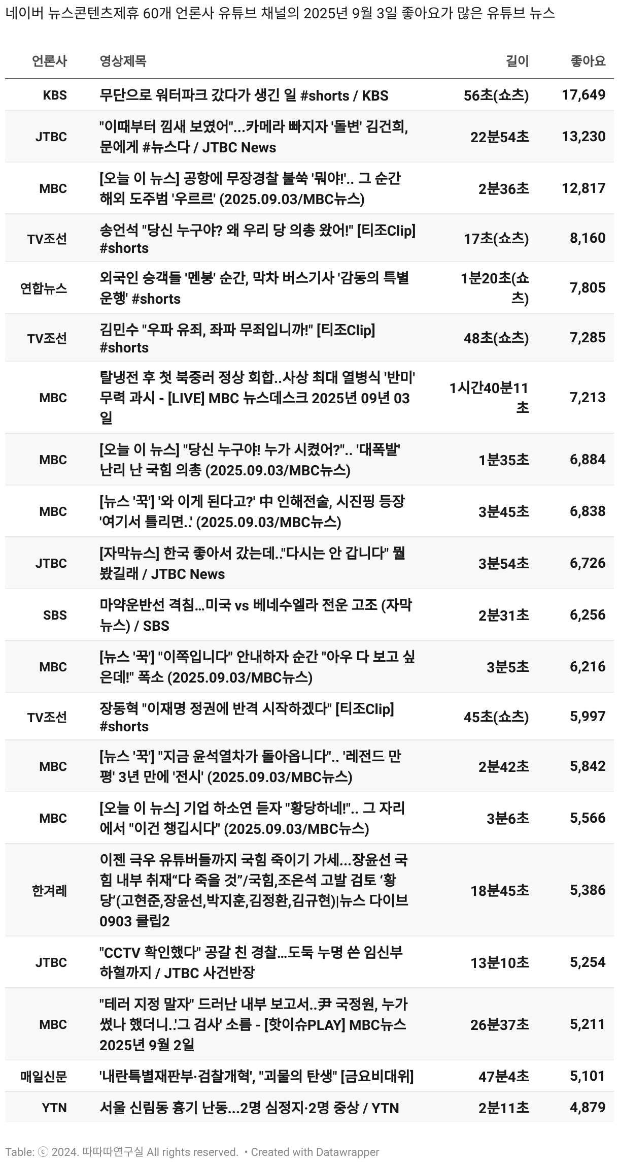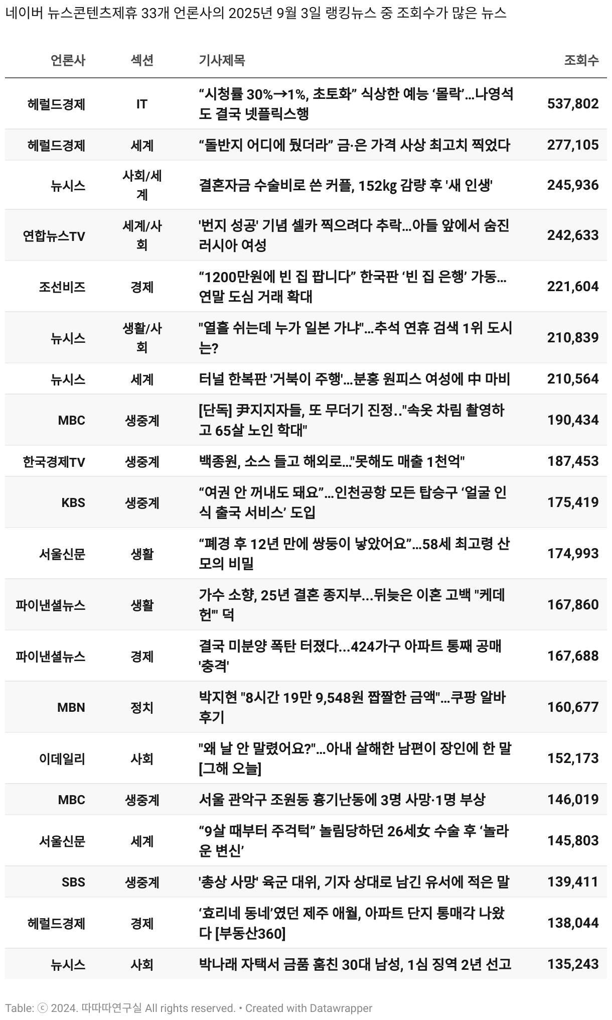 보도 시간대 기준 가장 흥한 기사 3건이 표시됩니다.