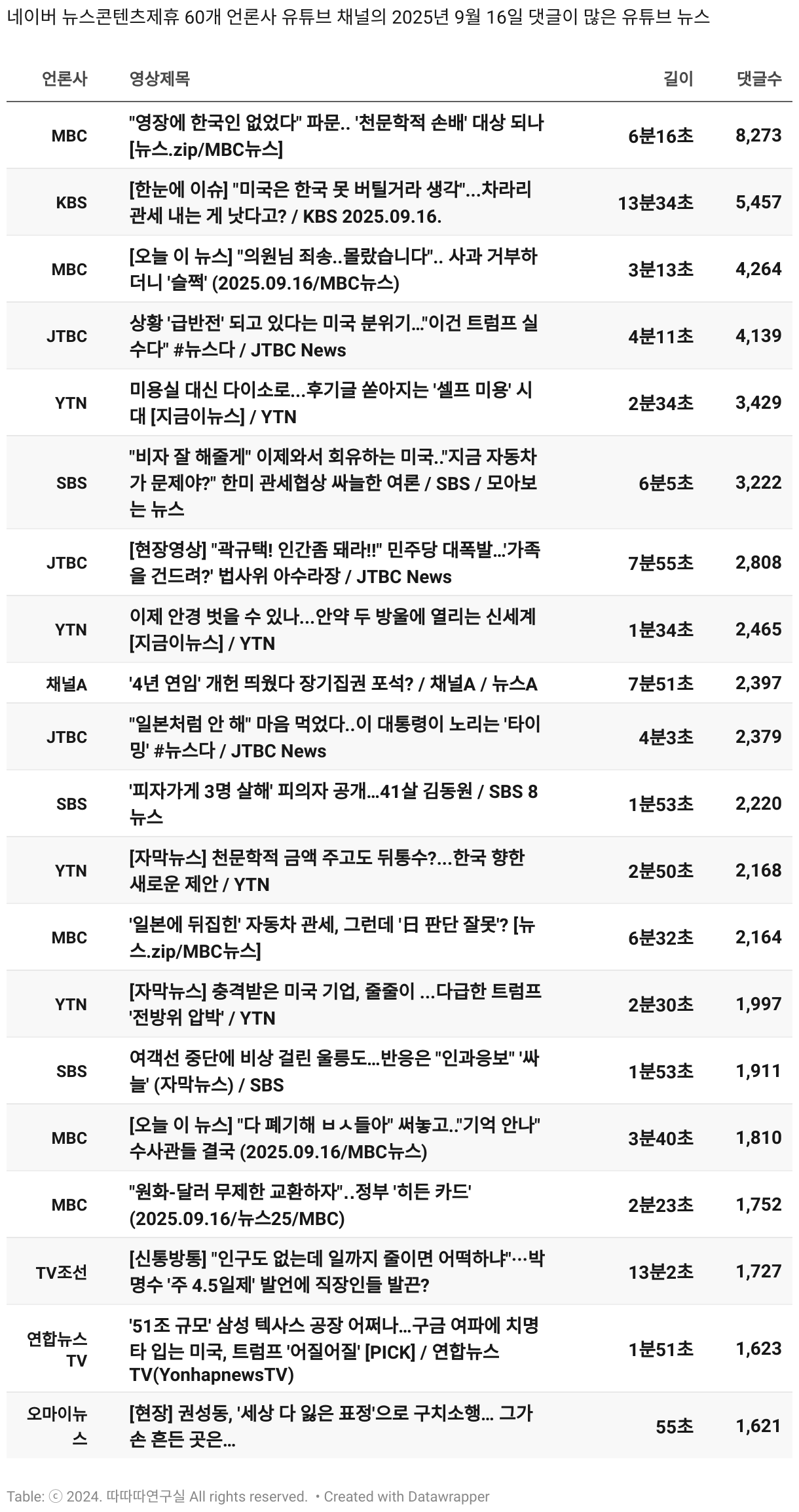일간 흥한 뉴스 - 9월 16일 화요일