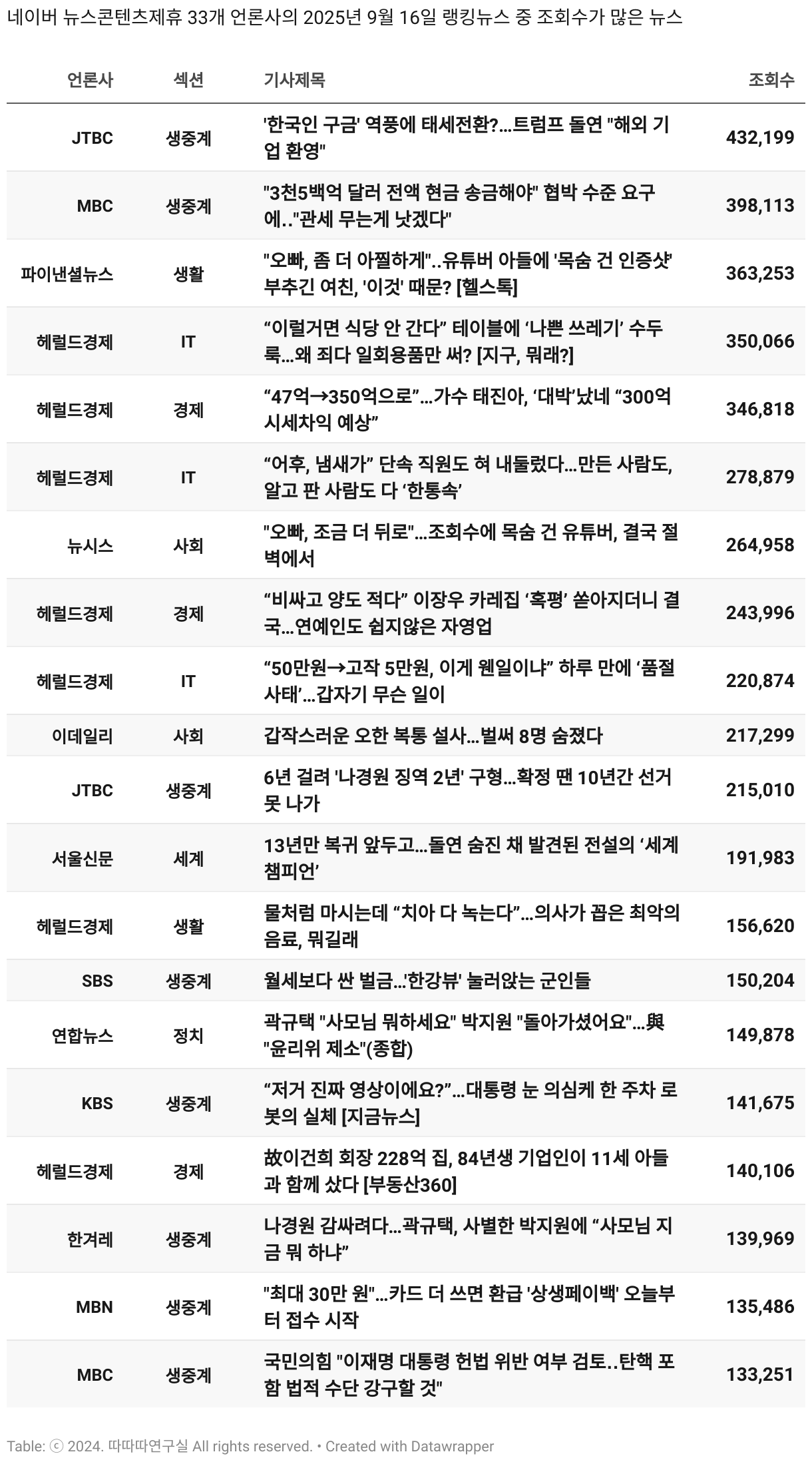 보도 시간대 기준 가장 흥한 기사 3건이 표시됩니다.