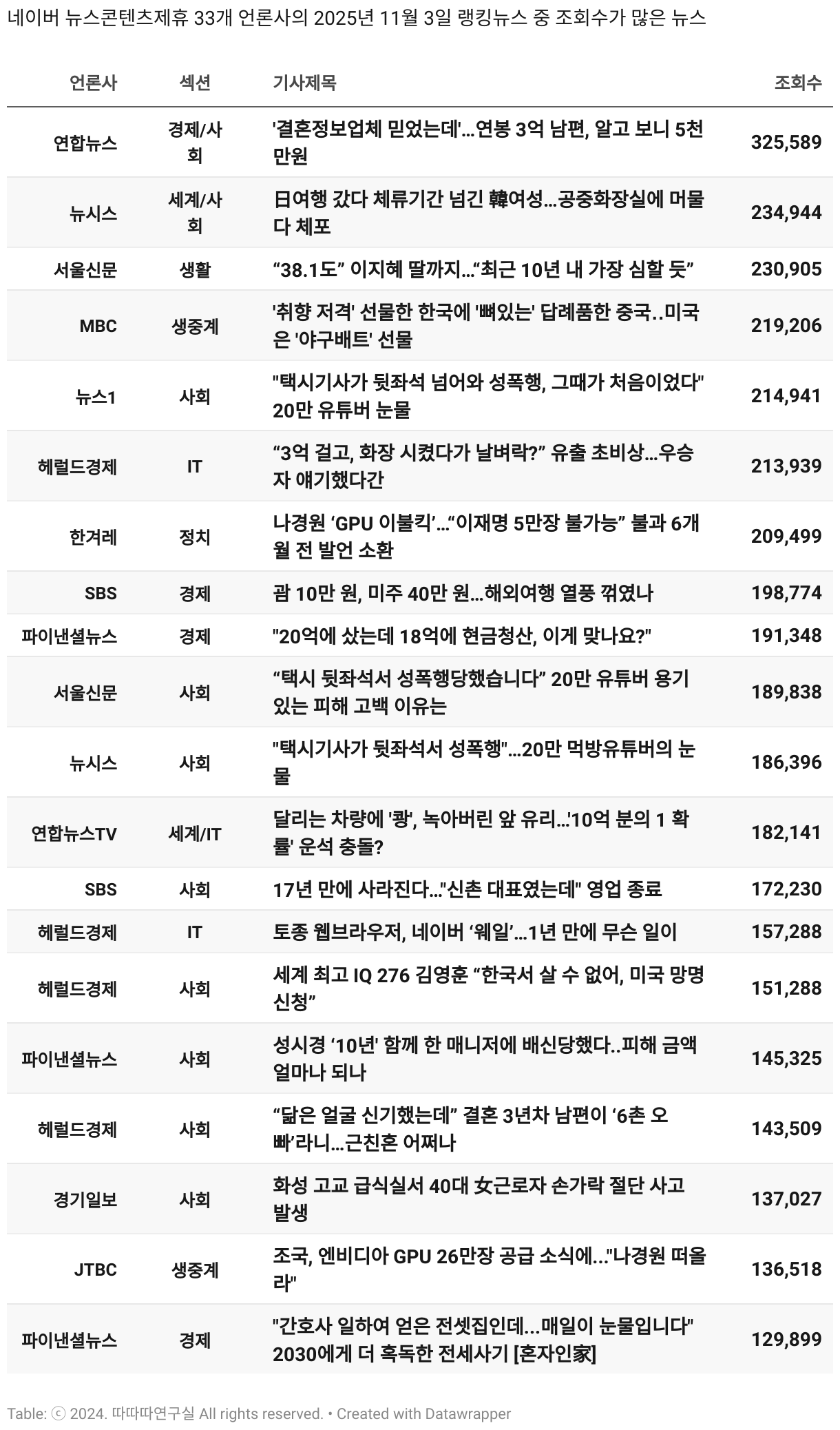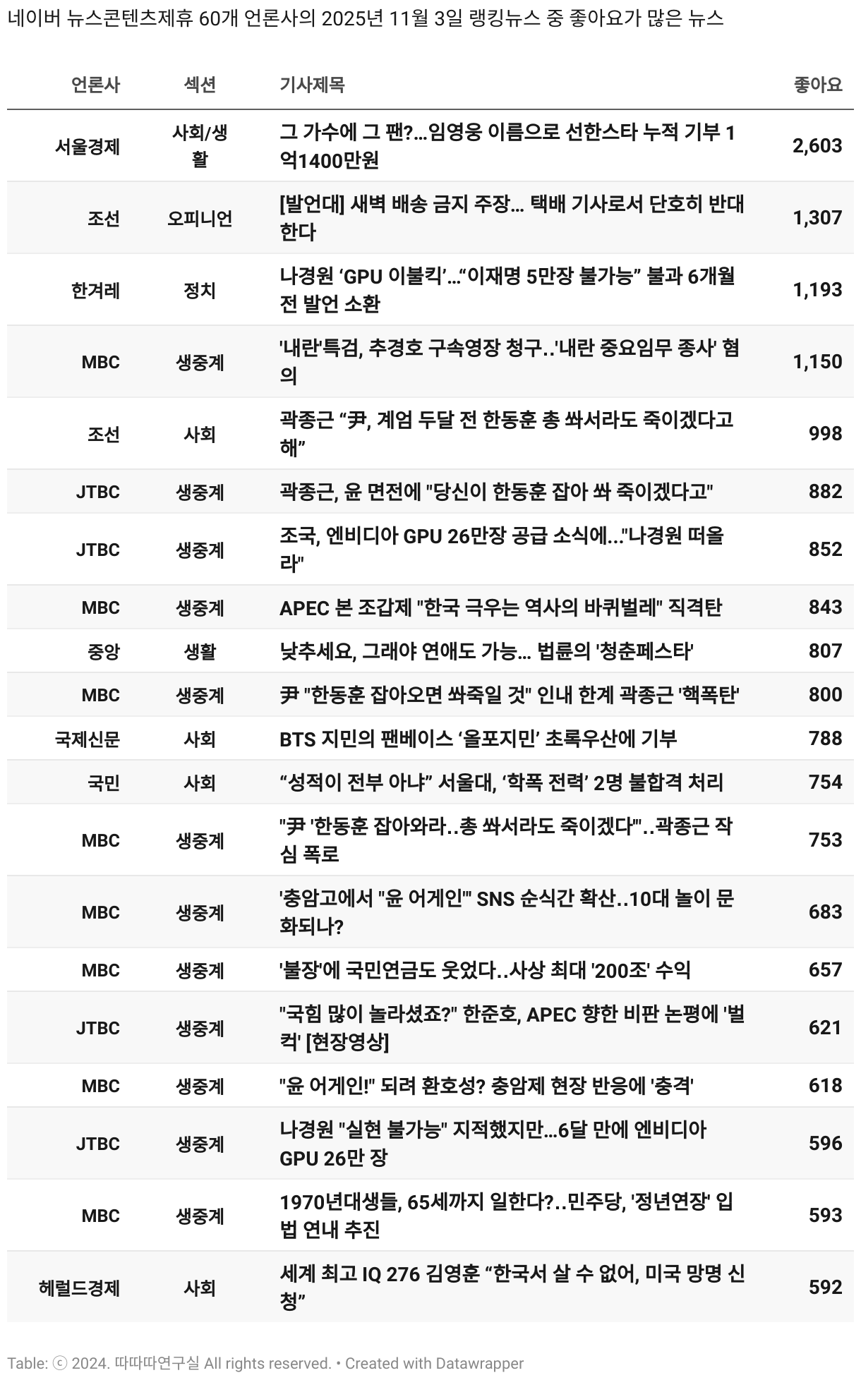 보도 시간대 기준 가장 흥한 기사 3건이 표시됩니다.
