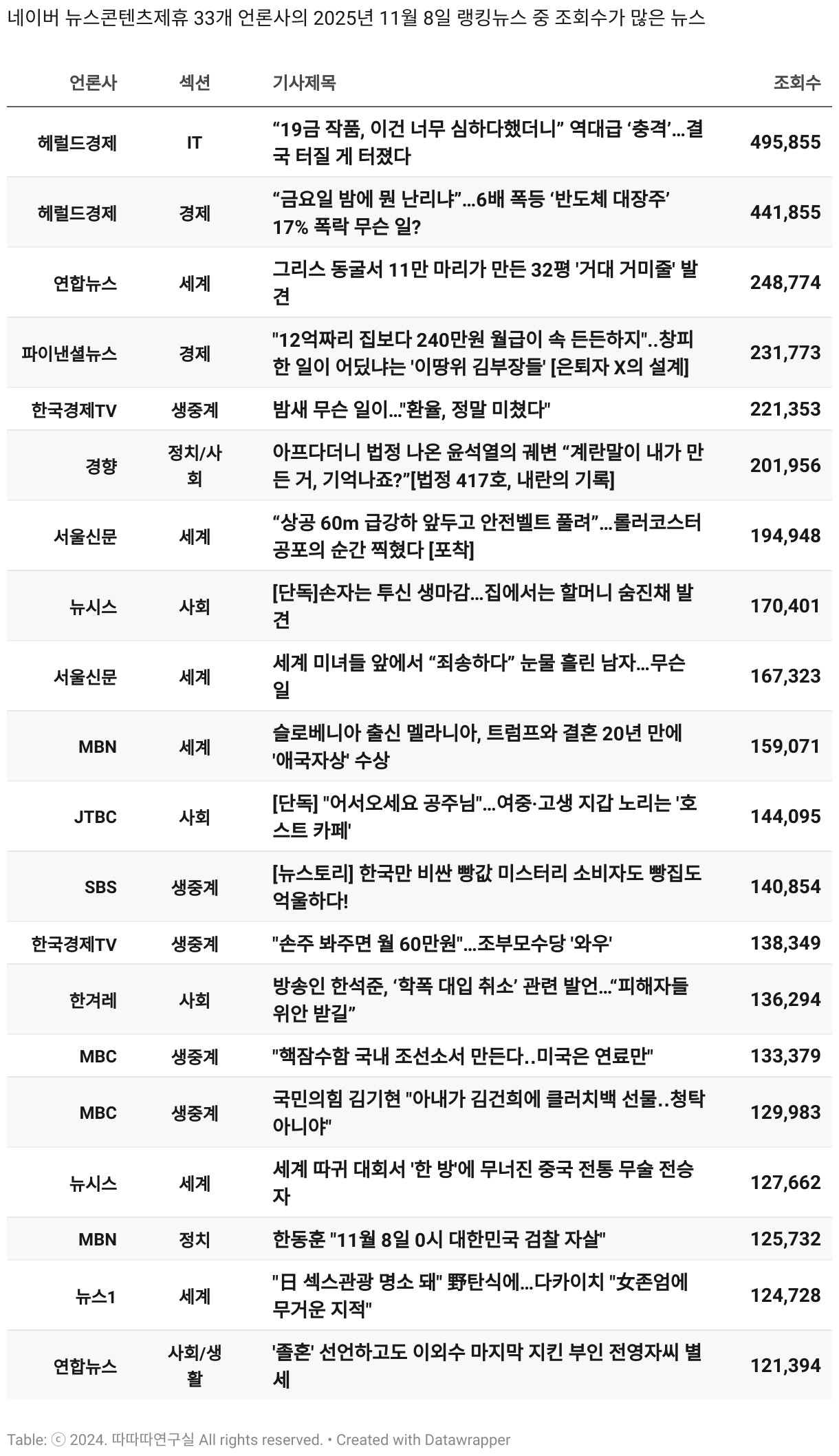 보도 시간대 기준 가장 흥한 기사 3건이 표시됩니다.