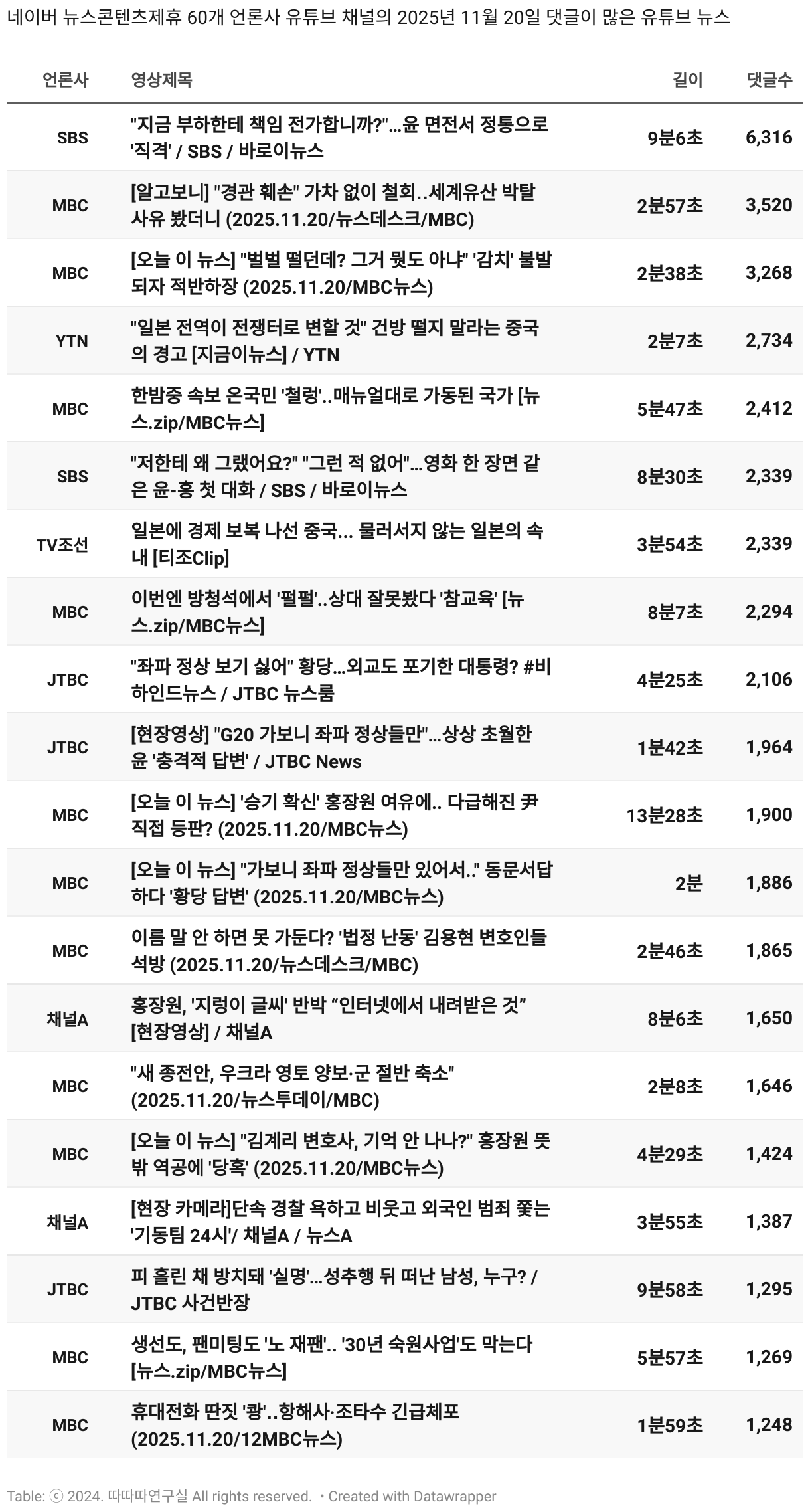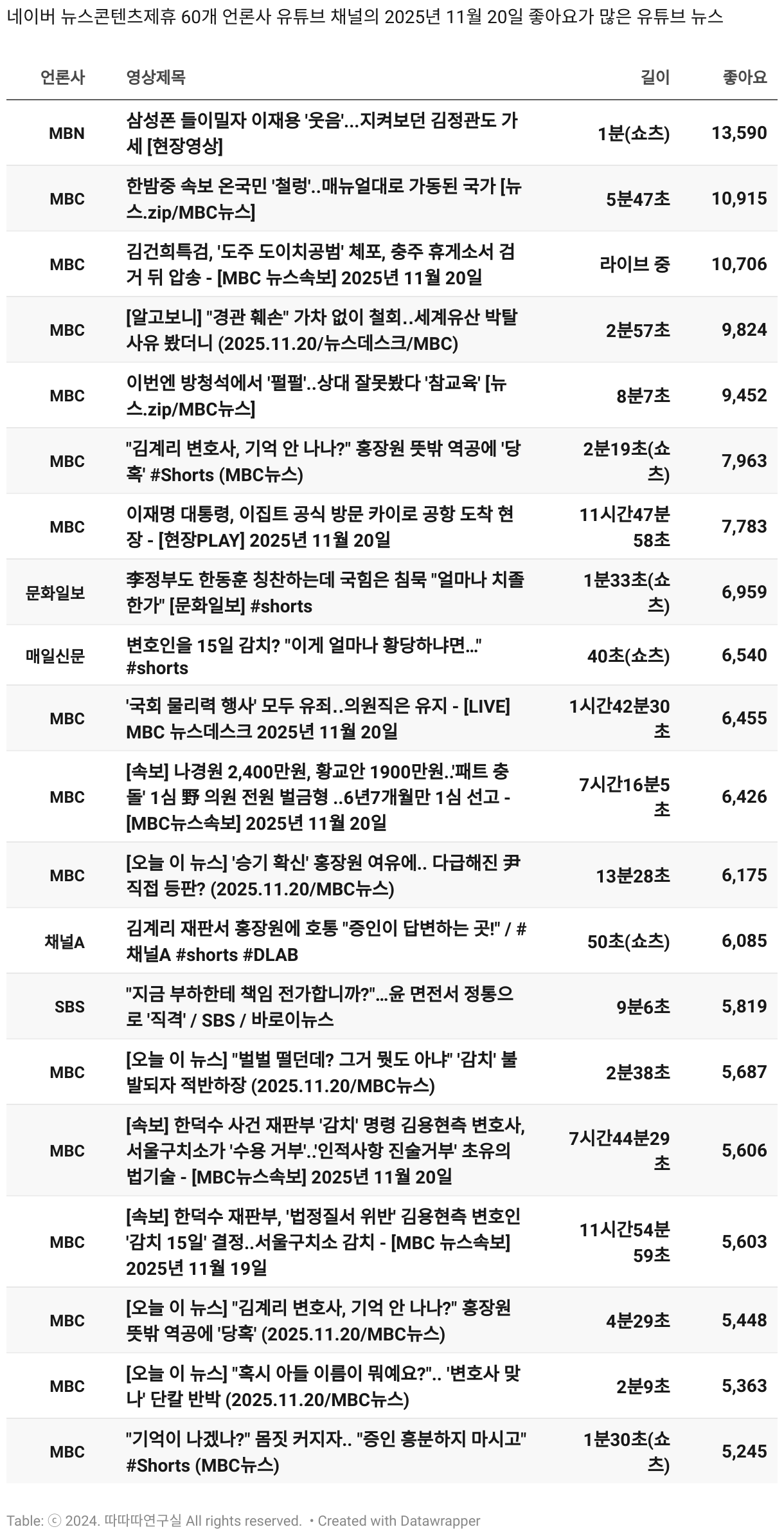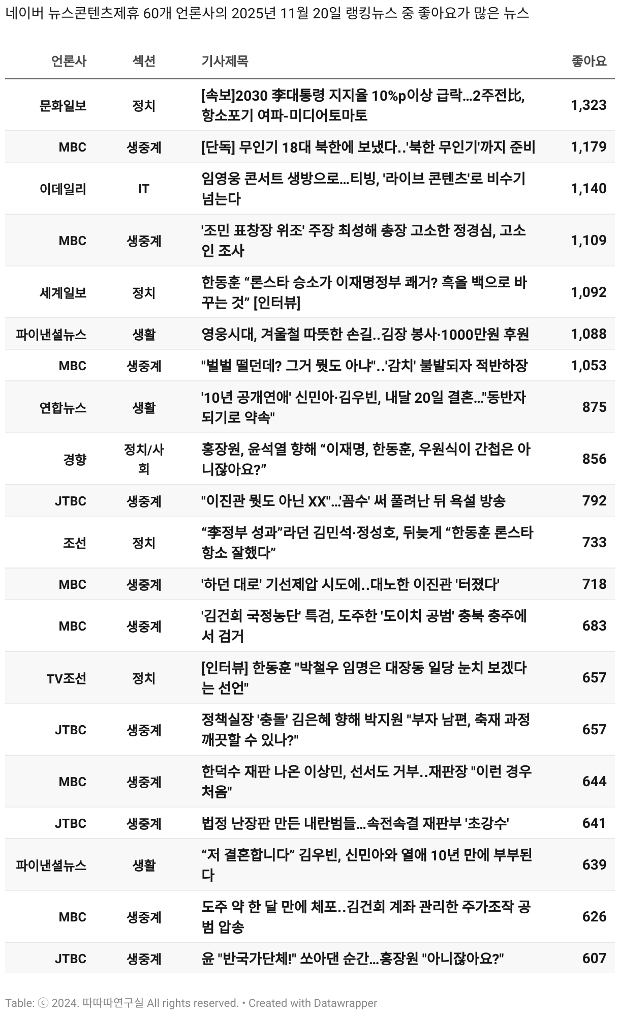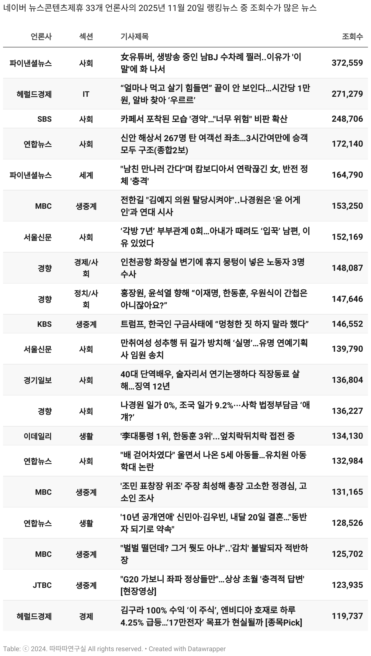 일간 흥한 뉴스 - 11월 20일 목요일