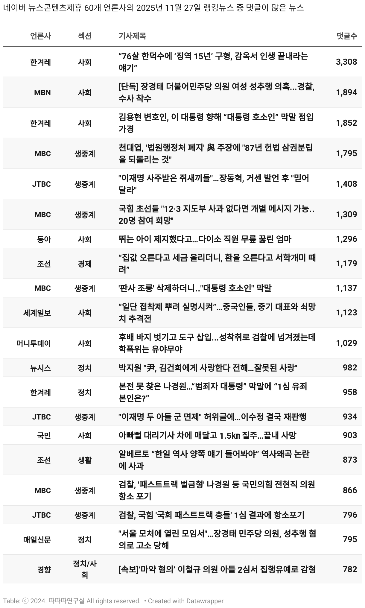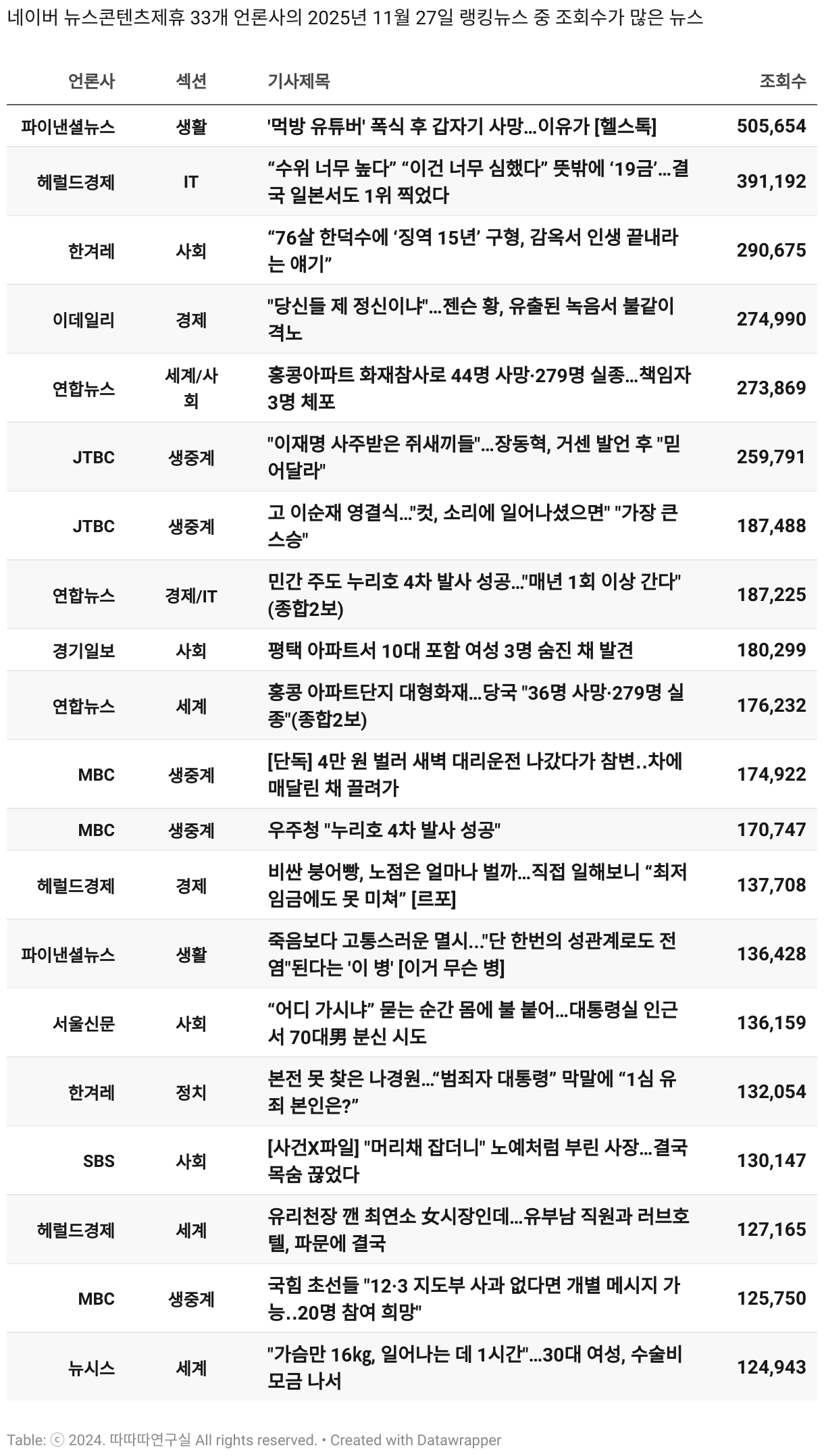 보도 시간대 기준 가장 흥한 기사 3건이 표시됩니다.