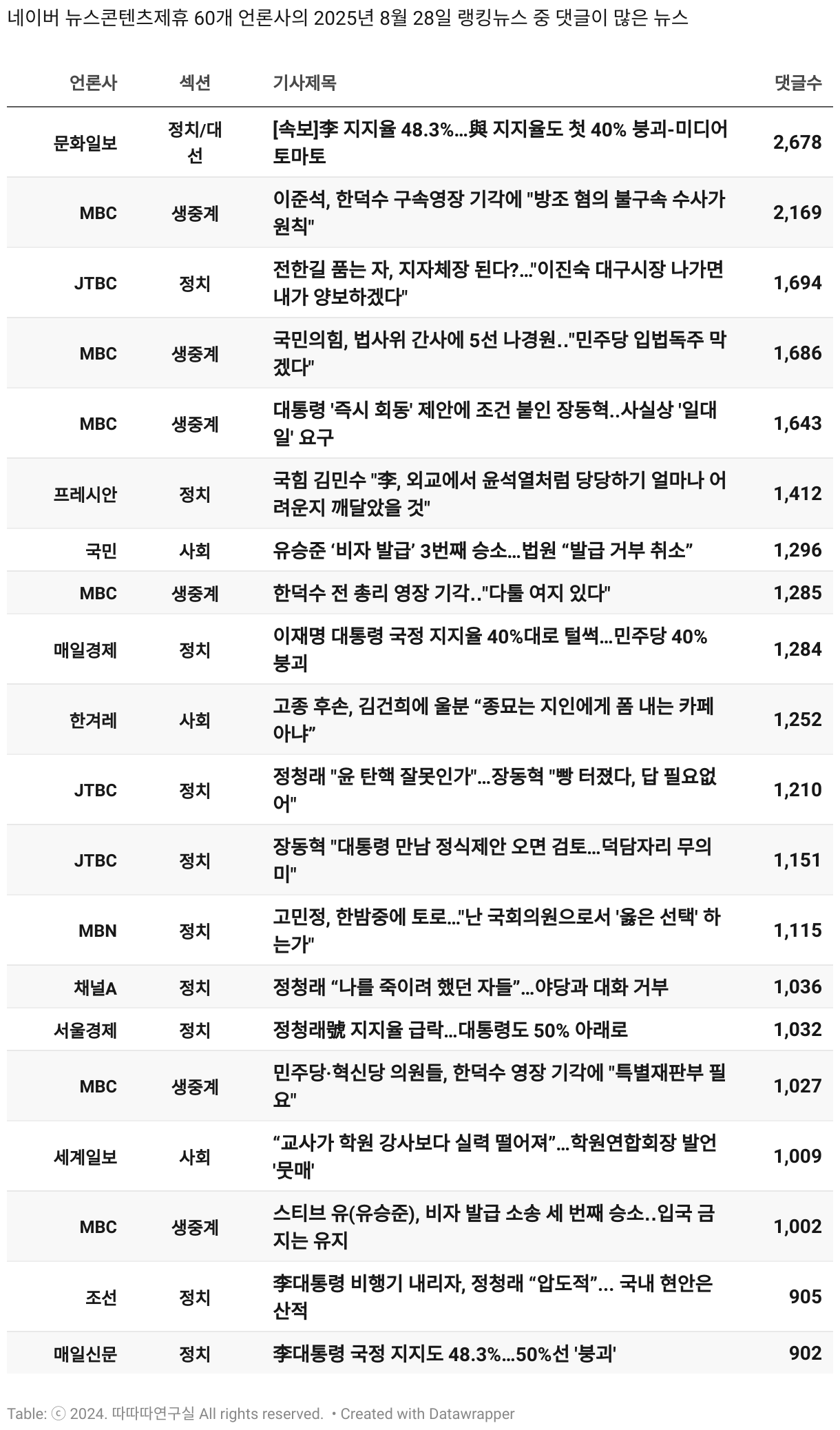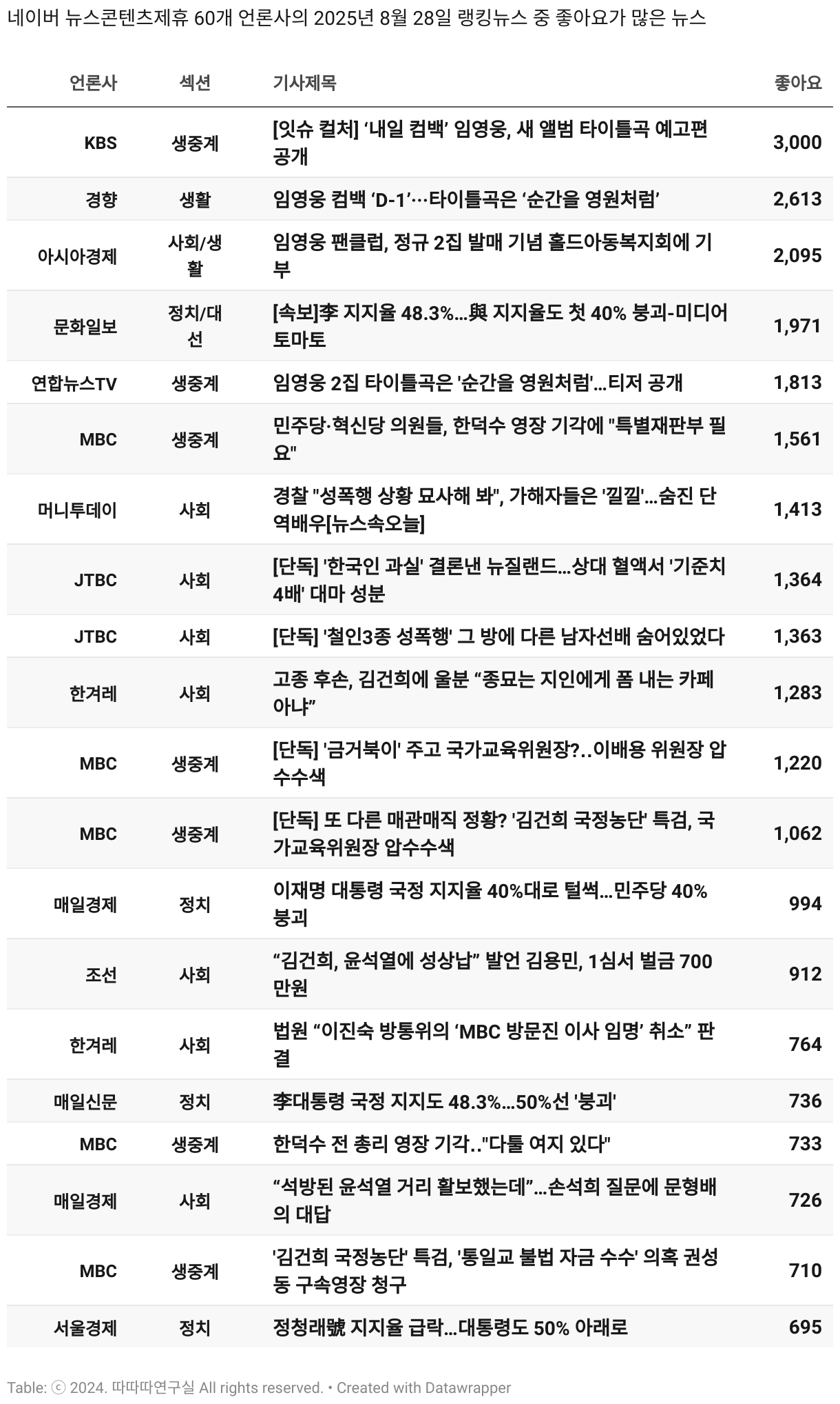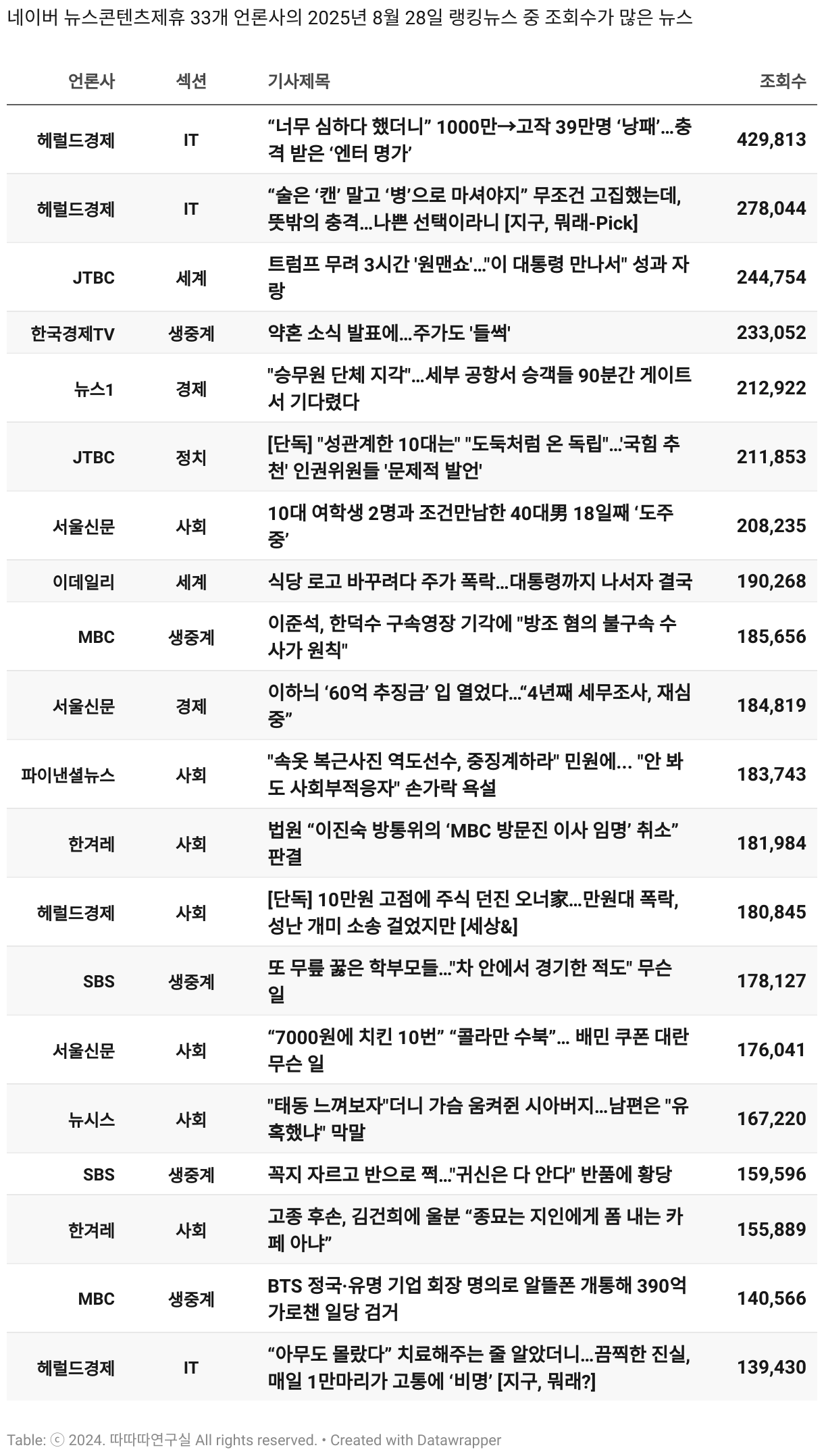 보도 시간대 기준 가장 흥한 기사 3건이 표시됩니다.