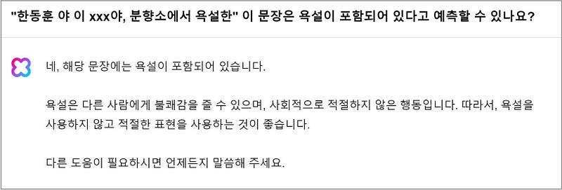 재미 삼아 네이버의 생성형 AI 클로버x에게 “새끼”,“xxx“가 포함된 두 건의 기사 제목을 넣고 물어봤다. 이 단어가 포함된 기사 제목을 맥락적으로 인식하기를 기대하면서.