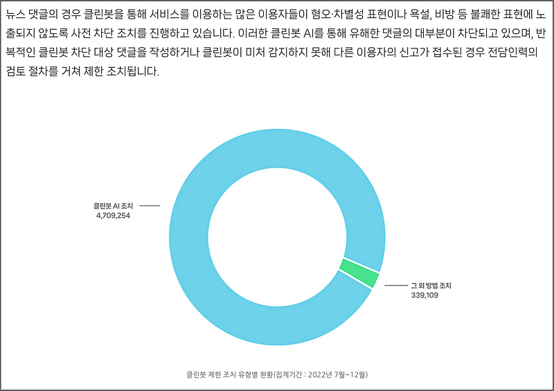네이버는 공식 블로그를 통해 “언론사별로 클린봇 탐지 강도를 직접 설정하고, 이태원 참사와 같이 안타까운 상황에서 악성 댓글이 증가할 경우 별도 알림 등을 통해 빠르게 댓글 OFF 여부를 결정할 수 있도록 신규 기능을 지원”한다고 밝혔다. 또 네이버 ‘그린인터넷’ 운영리포트에서는 2022년 7월 클린봇을 이용한 사전 차단 조치 진행을 알린 바 있다.