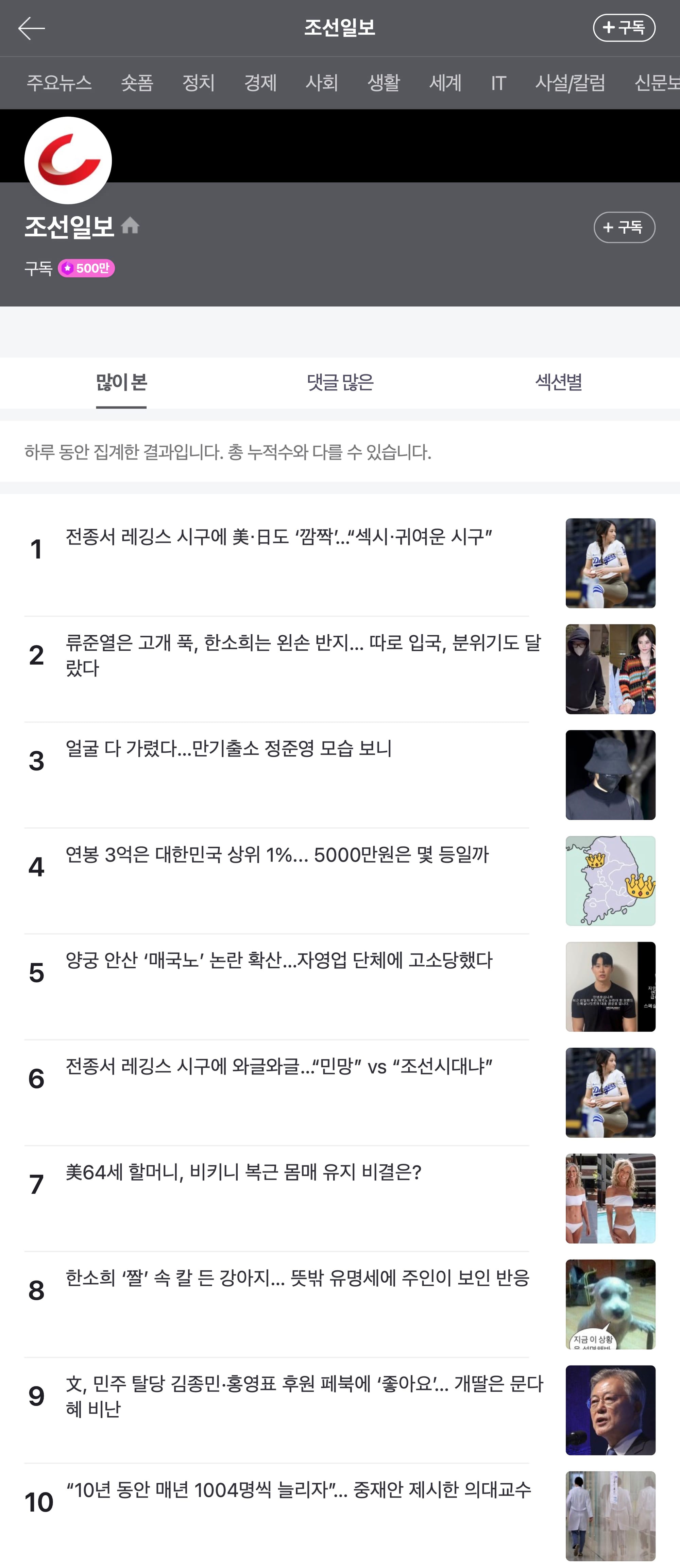 하지만 기자의 노력이 무색하게 이 기사에 달린 댓글 민심은 흉흉하기만 하다. 대통령이 “좌파도 우파도 아닌 대파”(아이디 qt**)라는 댓글에서 씁쓸함까지 느껴진다. 조선일보의 열성 구독자라면 이 기사에 자괴감을 들 것 같다.